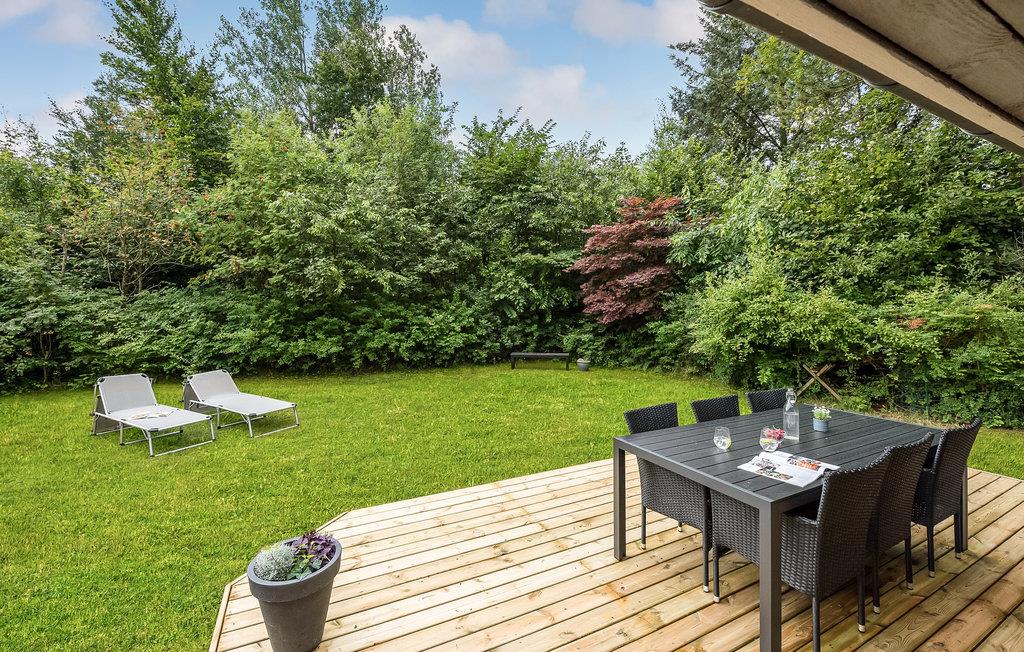 Das Haus befindet sich auf einem sichtgeschützten Grundstück mit großen Rasenflächen, auf denen die Kinder viel Platz zum Spielen und aktiv sein finden. Die Terrassen laden zum Sonnenbaden oder Lesen ein.