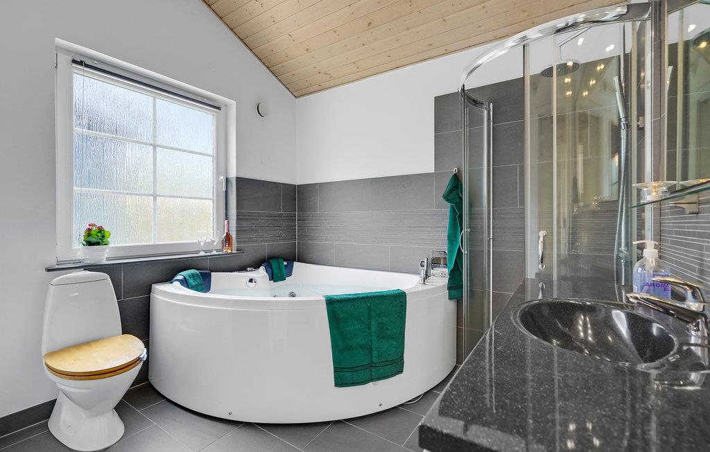 Kommen Sie mit Ihrer Familie und Ihren Freunden samt Haustier nach Jegum Ferieland, um einen außergewöhnlich schönen Aufenthalt zu verbringen. Die Unterkunft ist mit allem, was Sie für eine sorglose Zeit brauchen, ausgestattet. Genießen Sie gemeinsame Mahlzeiten mit Ihren Liebsten im schönen Essbereich innen oder draußen auf der Terrasse. Der Innenhof ist von hübschen Blumenbeeten umkranzt und bietet sichtgeschützte Bereiche, an denen Sie sich entspannt aufhalten können. An kühleren Abenden machen Sie es sich zusammen vor dem Kamin bequem und vergnügen sich bei einem Film- oder Spieleabend. Die Sauna und der Whirlpool im schönen Badezimmer runden den Wohlfühl-Urlaub wunderbar ab.
