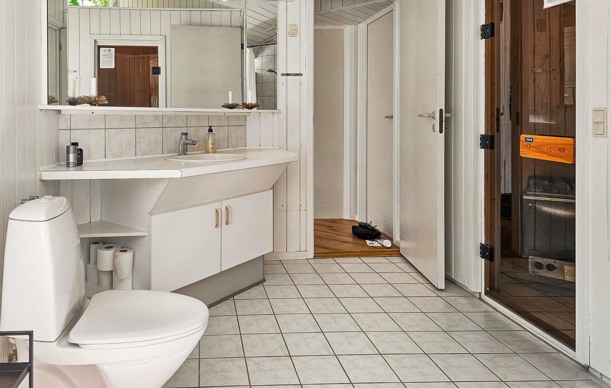Dieses schöne Haus heißt Sie mit Komfort und schlichter Eleganz willkommen. Ein lichtdurchfluteter Wohnraum mit einer bequemen Sofalandschaft lädt dazu ein, gemütliche Stunden beim Kaffeetrinken oder Fernsehen zu verbringen. In der modernen Küche können Sie sich ein Kochduell mit Ihren Lieben liefern und das Essen anschließend mit einem Glas Wein genießen. An kühlen Tagen lädt die Sauna dazu ein, sich bei wohliger Wärme intensiv zu entspannen.