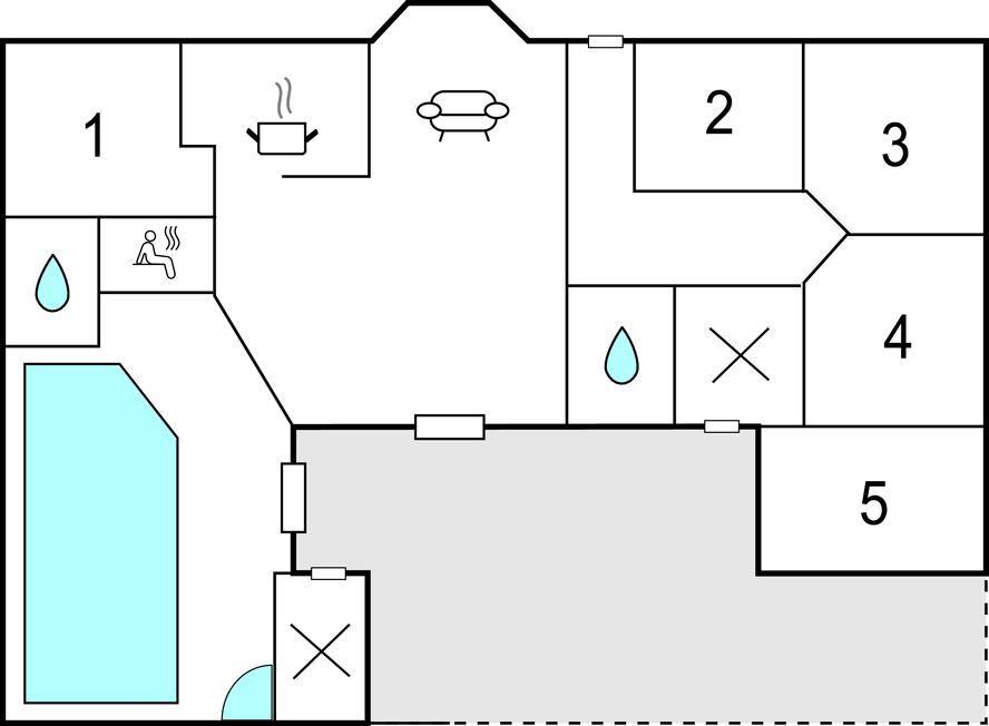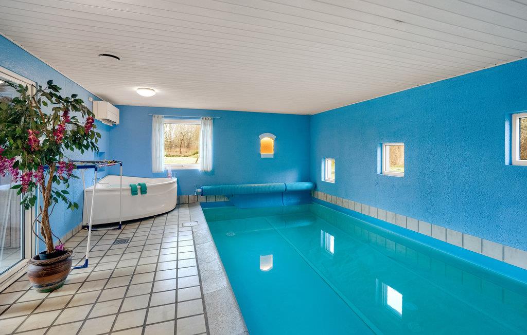 Geräumiges Poolhaus mit Sauna und Whirlpool auf großem Naturgrundstück im Jegum Ferieland, perfekt für Sport und Erholung.