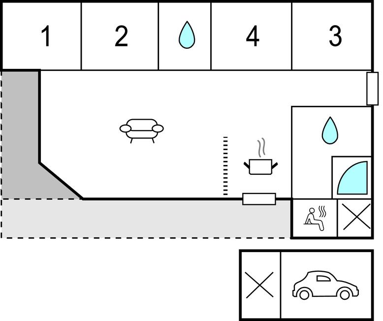 - WC mit warmem und kaltem Wasser, Dusche