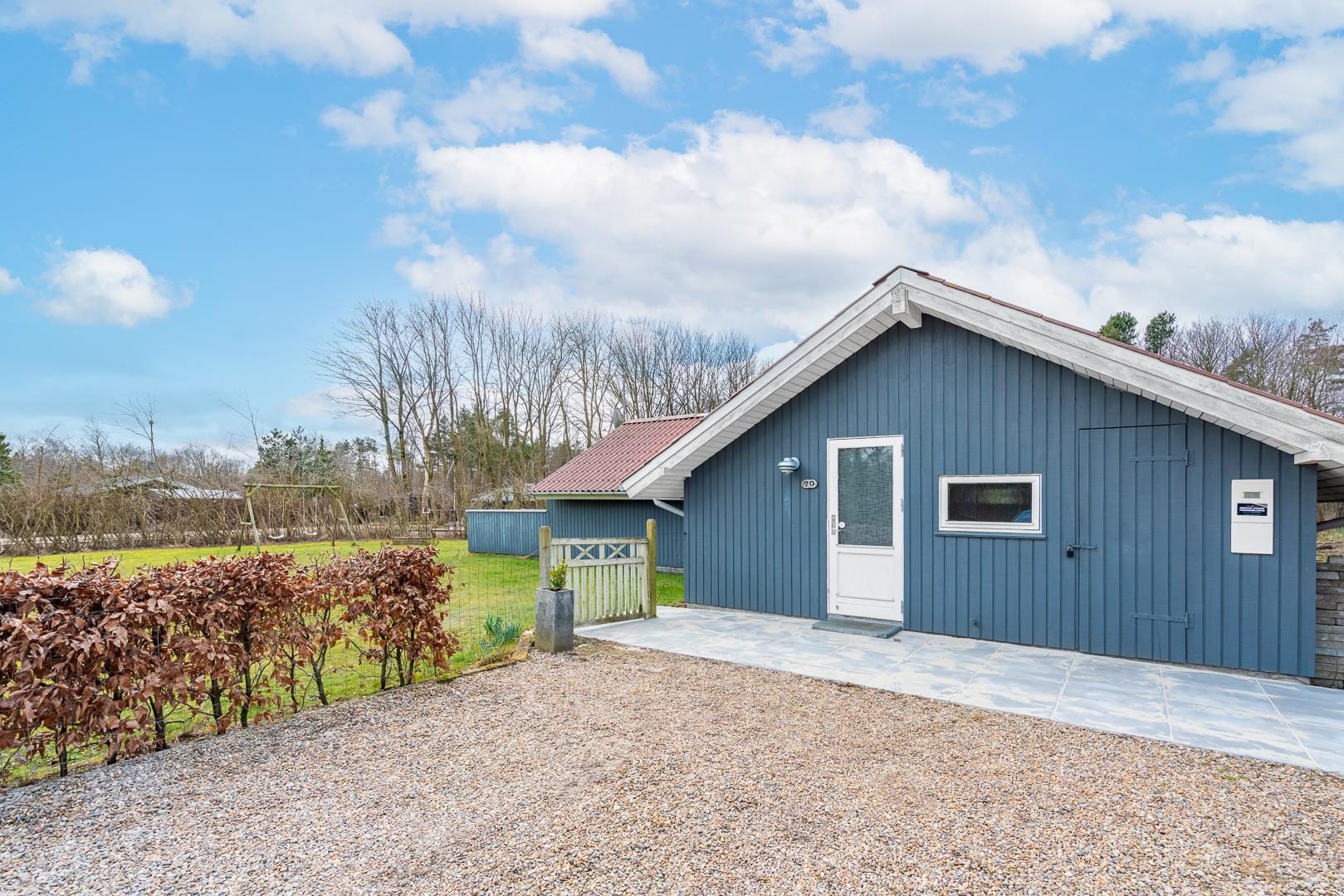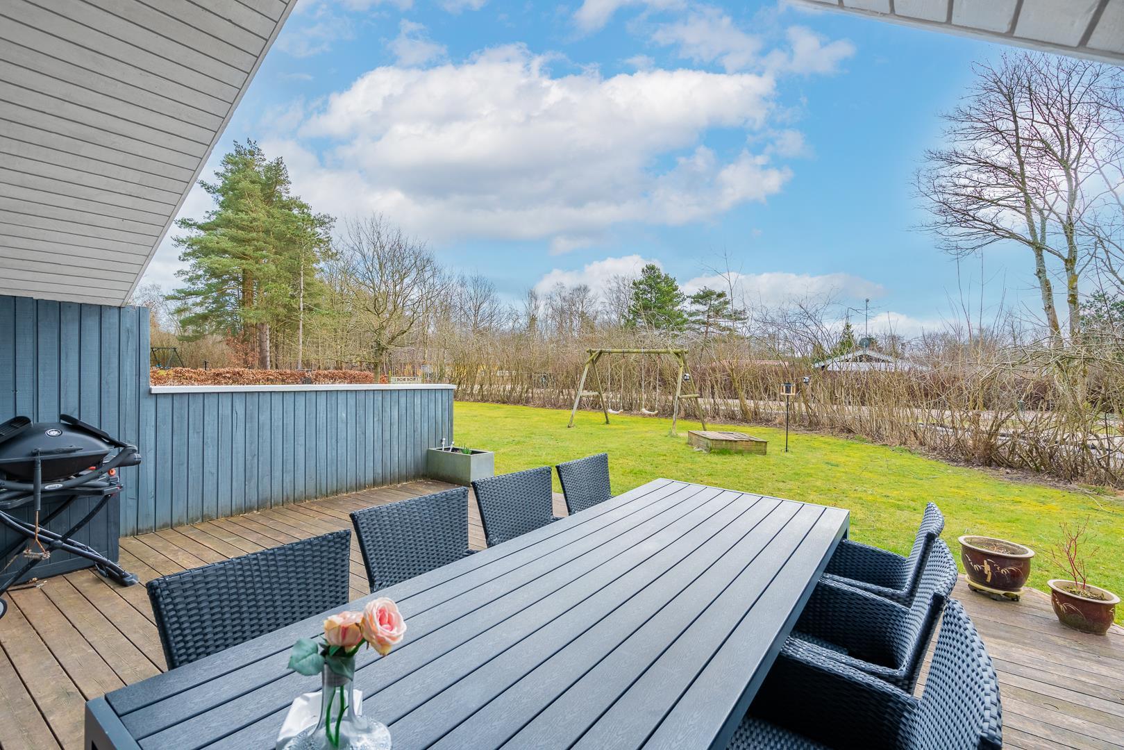 Der Außenbereich im Fyrrelunden 70 ist wie geschaffen für den Urlaub mit Hund und Kindern. Das eingezäunte Grundstück gibt Sicherheit und sorgt dafür, dass sich die Hunde frei bewegen können, während die Kinder ungestört spielen. Für die Kinder gibt es außerdem eine Schaukel und einen Sandkasten, die schnell zum Mittelpunkt vieler Spielstunden werden.