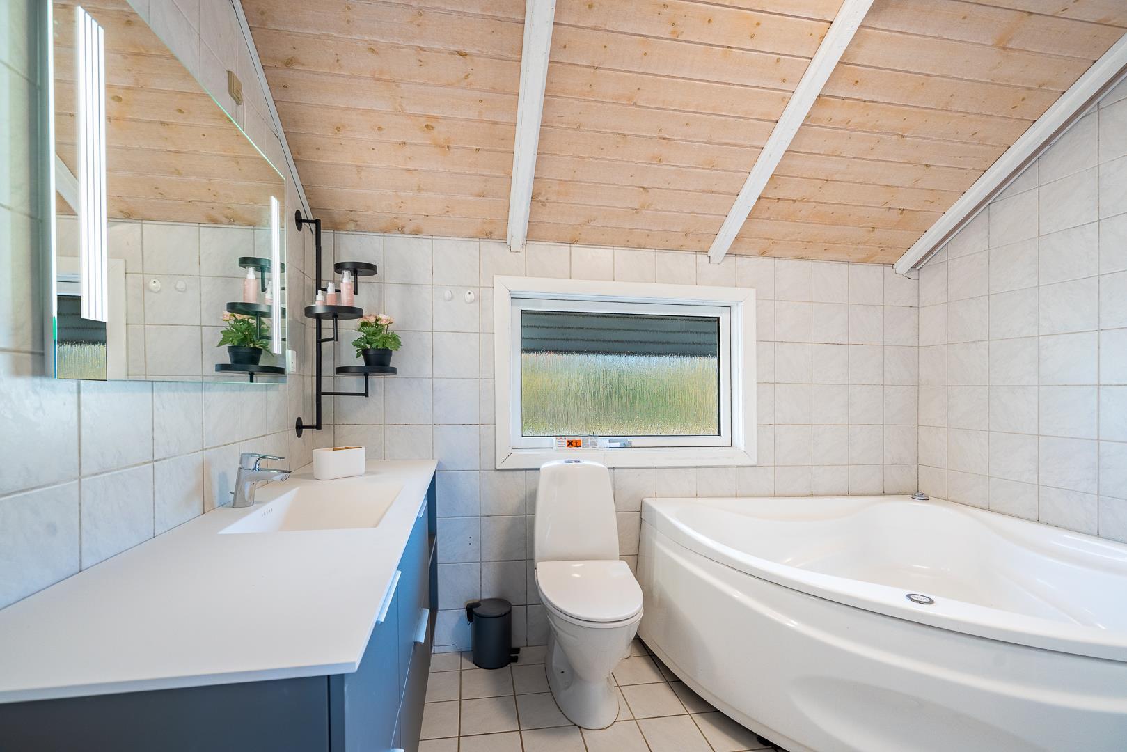Ein besonderes Highlight ist der Wellnessbereich: Hier warten eine Sauna und ein Whirlpool – perfekt, um nach einem langen Spaziergang an der Nordsee zu entspannen. Das Badezimmer hat außerdem eine Fußbodenheizung, welche für zusätzlichen Komfort sorgt.