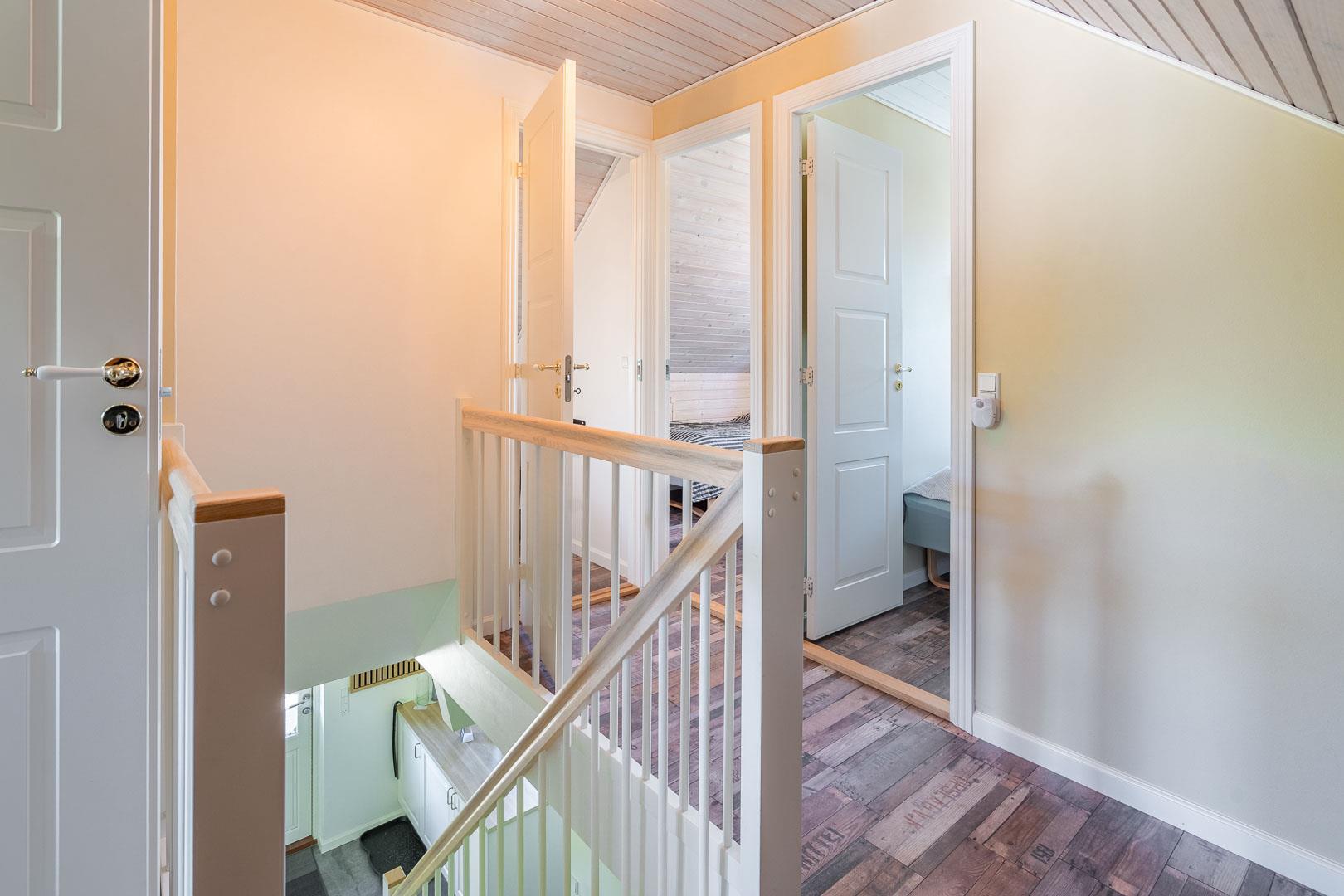 Das Ferienhaus bietet insgesamt 3 Schlafzimmer: eines mit einem Doppelbett und zwei mit jeweils zwei Einzelbetten – ideal für Familien mit Kindern oder befreundete Paare.