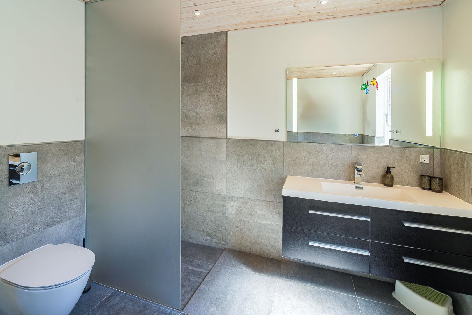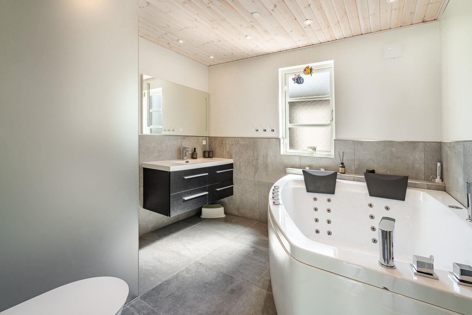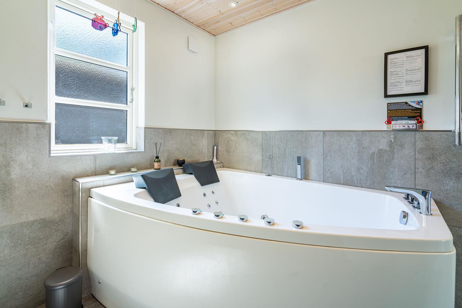 Der Whirlpool im Badezimmer lädt nach einem langen Tag am Strand zum Entspannen ein. Und dank der Fußbodenheizung bleiben auch die Füße immer angenehm warm.