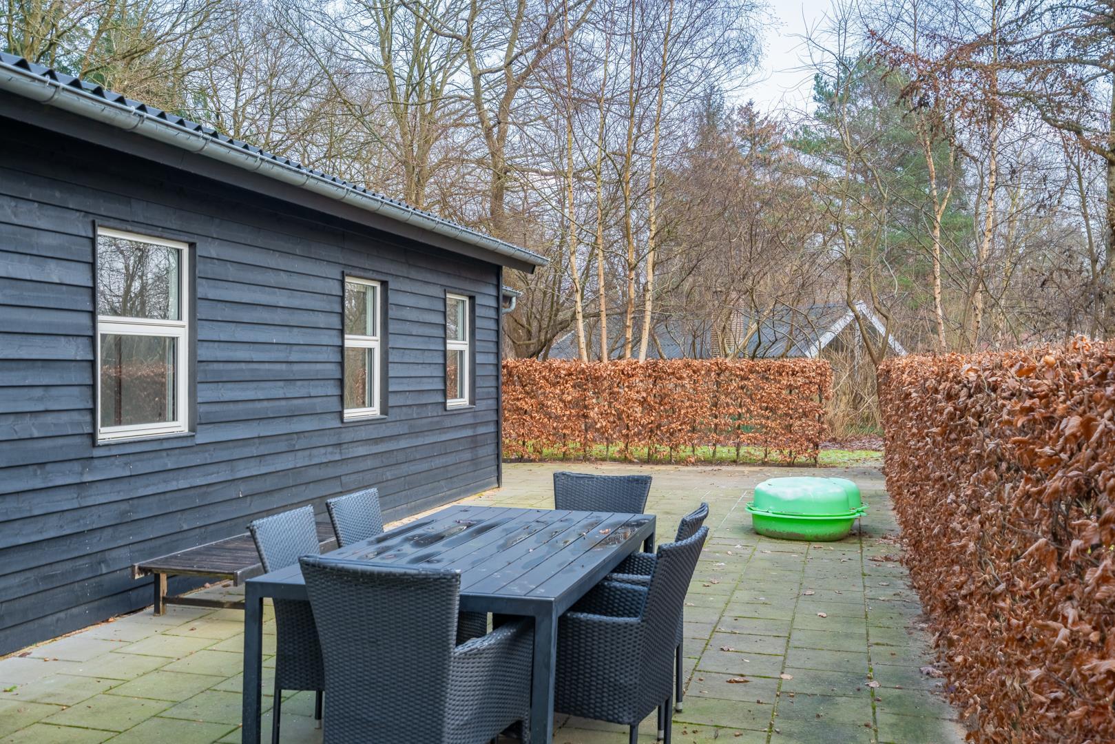 Im Außenbereich wartet eine überdachte Terrasse, auf der du bei jedem Wetter entspannen kannst. Für Kinder ist dieses Ferienhaus in Jegum Ferieland besonders gut geeignet: Schaukel und Trampolin sorgen für Bewegung, Spaß und glückliche Urlaubstage, während du die Ruhe genießt.