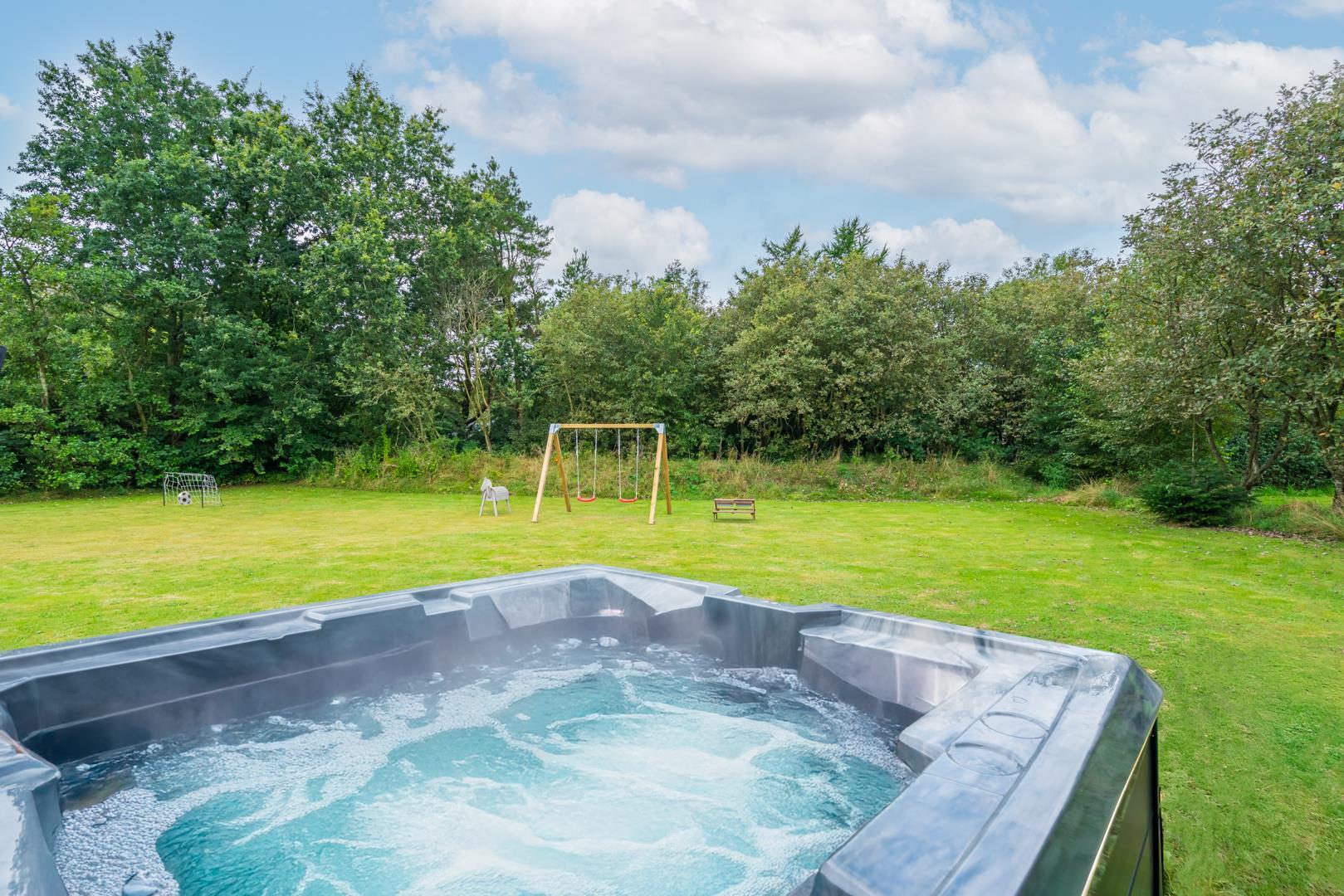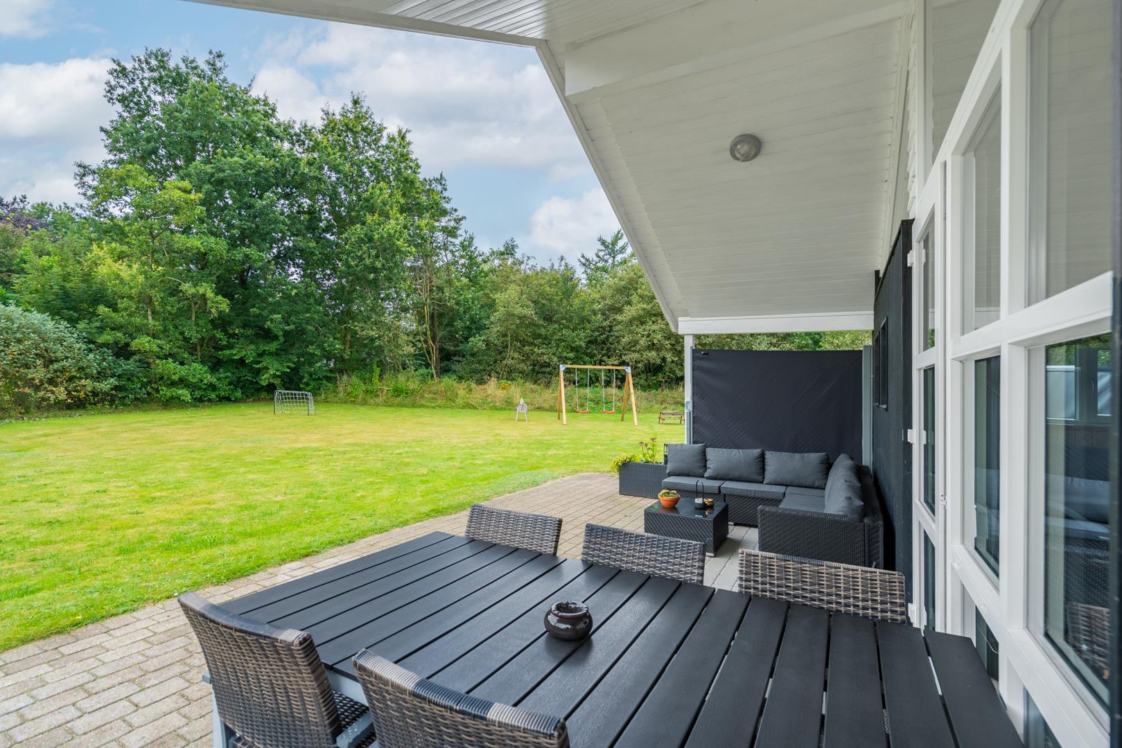 Auf der überdachten Terrasse kannst du bei jedem Wetter draußen sitzen, essen oder entspannen. Für Kinder gibt es eine Schaukel, während du den Tag ruhig ausklingen lässt. Das großzügige Grundstück bietet viel Platz zum Spielen und Erholen.