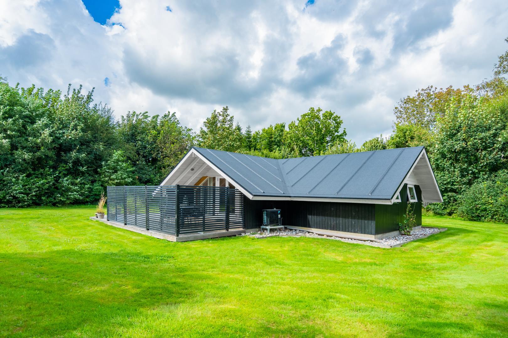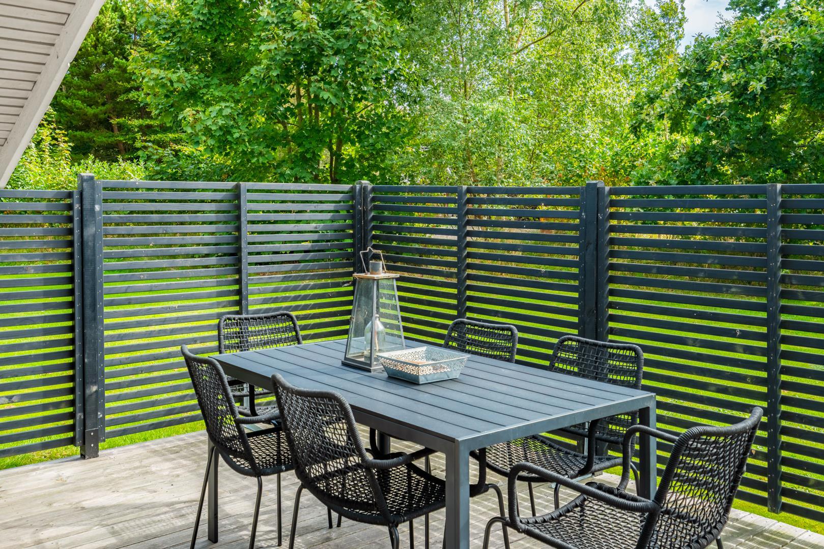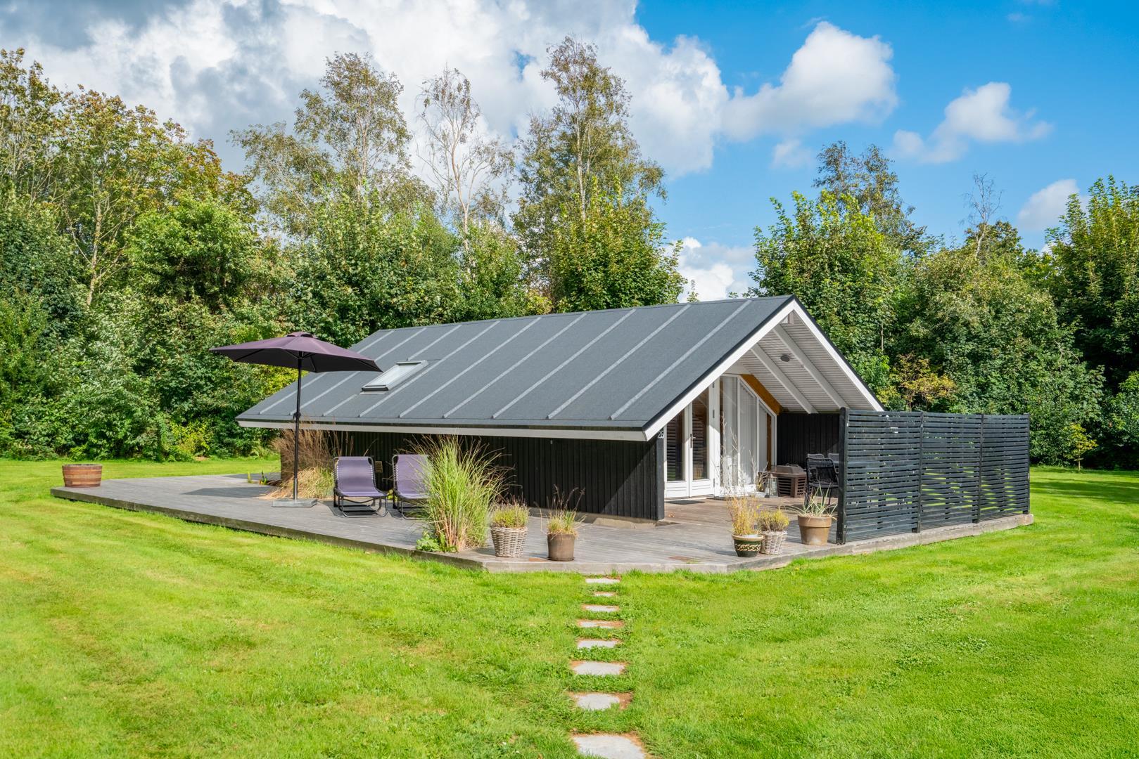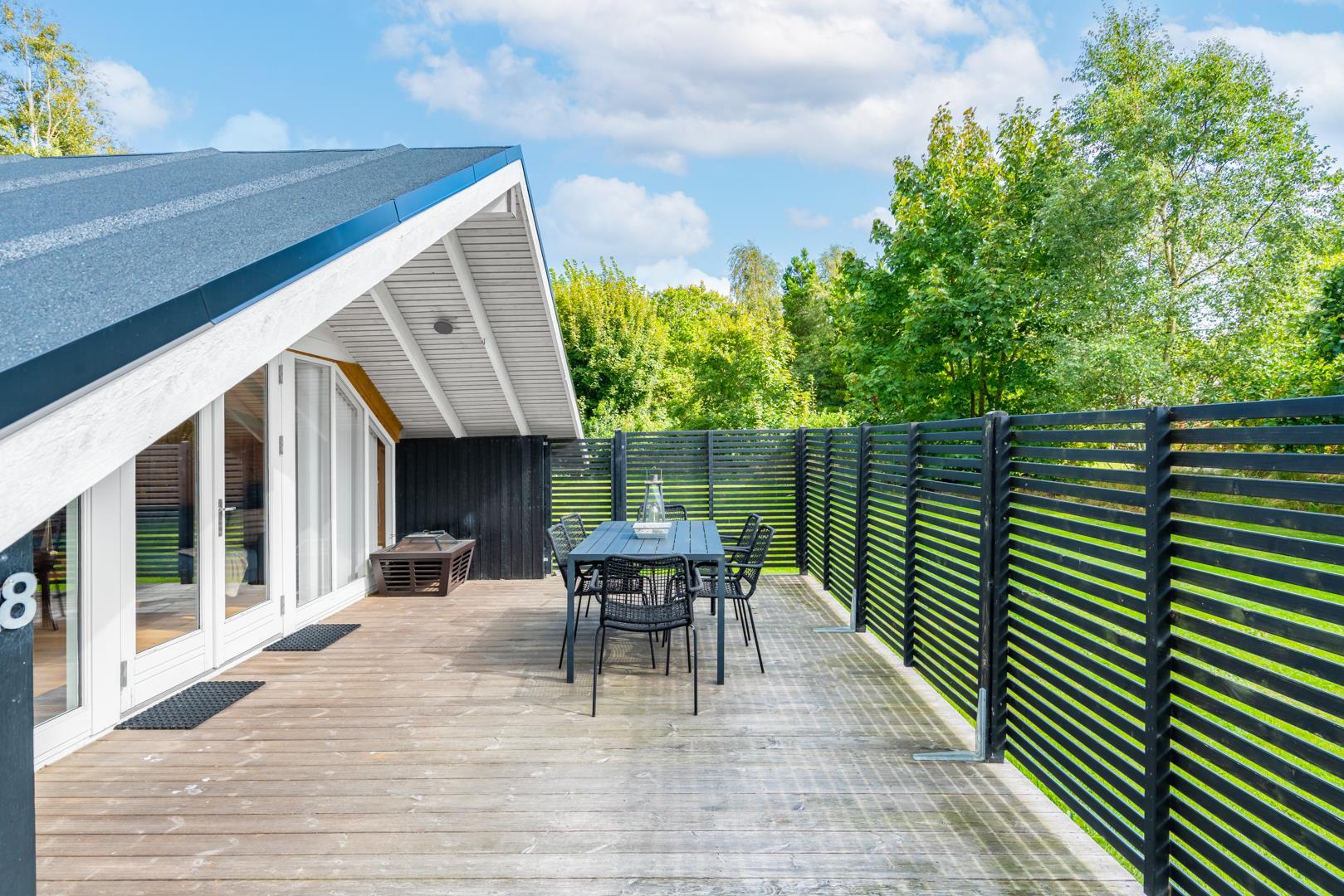 Draußen erwartet euch ein großzügiger und ruhiger Außenbereich, der perfekt zu einem erholsamen Urlaub mit Hund in Dänemark passt. Die geschlossene Terrasse bietet viel Privatsphäre und ist ideal, wenn ihr mit Kindern oder Hund unterwegs seid. Hier könnt ihr die Sonne genießen, entspannen oder den Tag ganz in Ruhe ausklingen lassen.