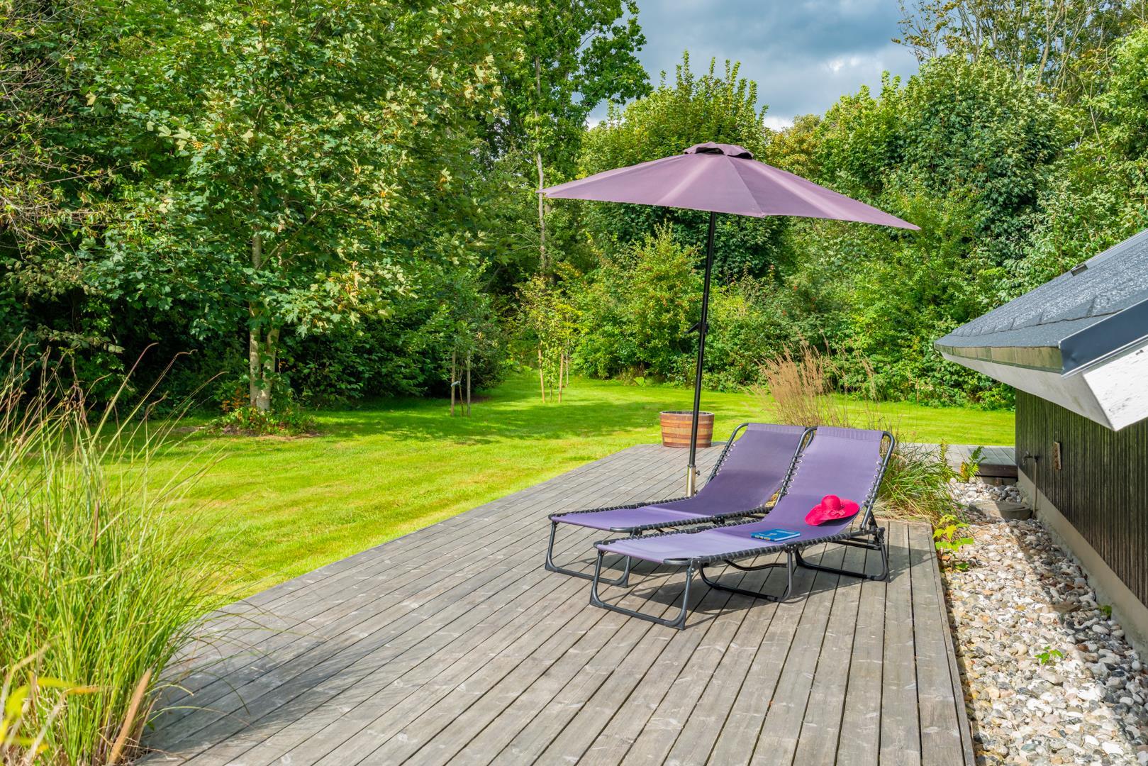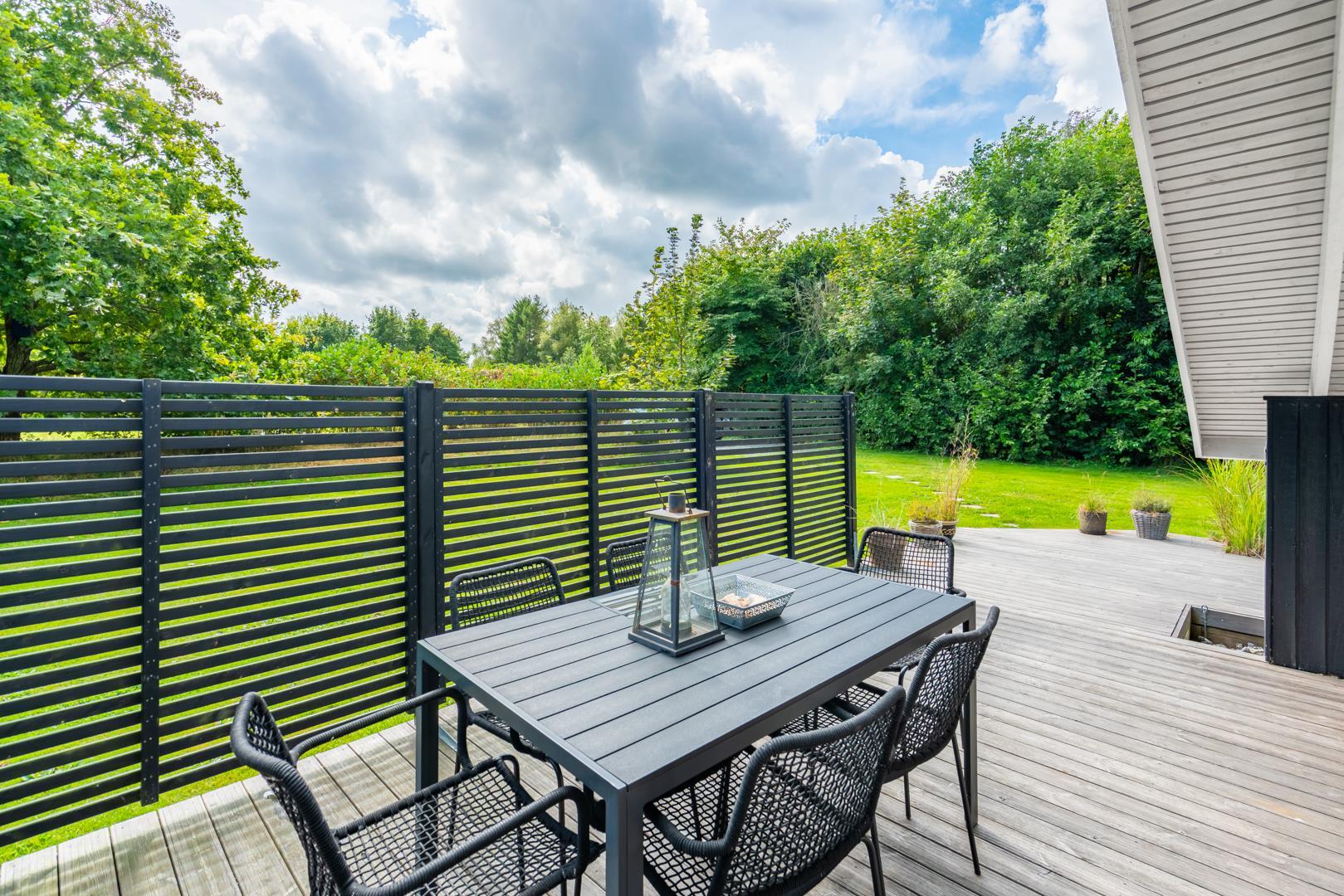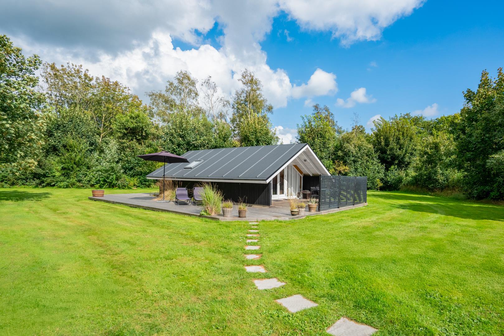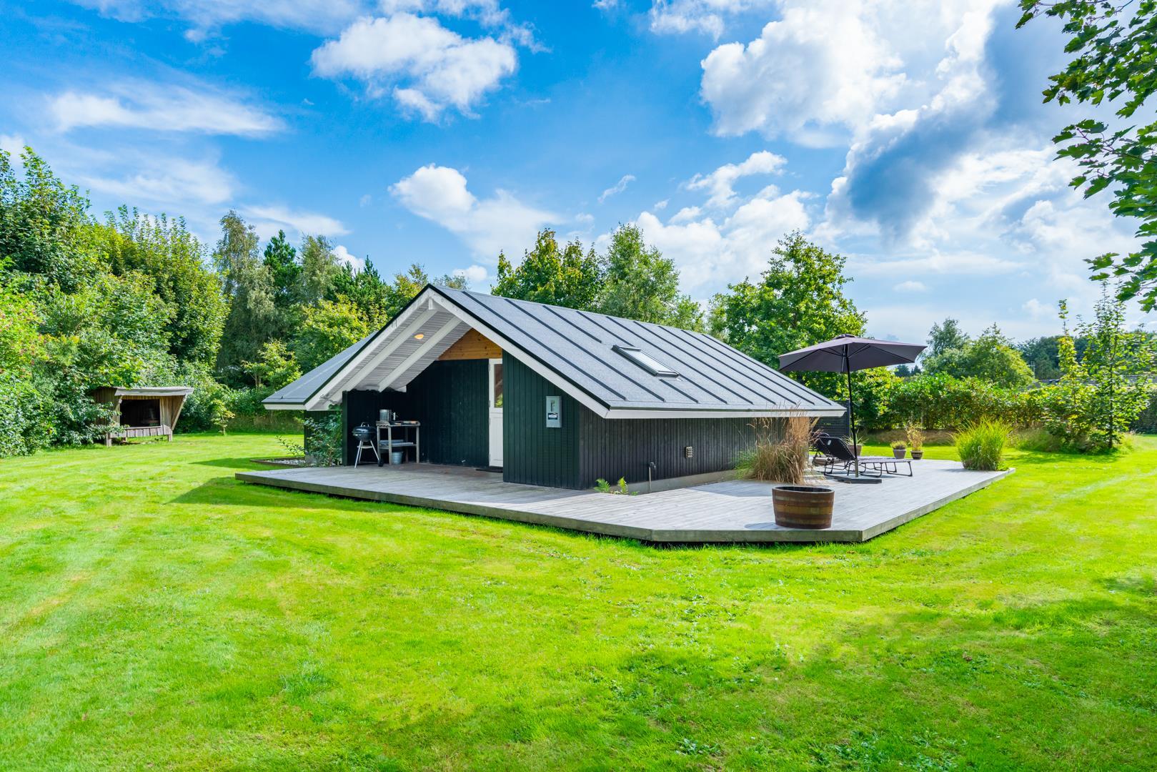 Draußen erwartet euch ein großzügiger und ruhiger Außenbereich, der perfekt zu einem erholsamen Urlaub mit Hund in Dänemark passt. Die geschlossene Terrasse bietet viel Privatsphäre und ist ideal, wenn ihr mit Kindern oder Hund unterwegs seid. Hier könnt ihr die Sonne genießen, entspannen oder den Tag ganz in Ruhe ausklingen lassen.