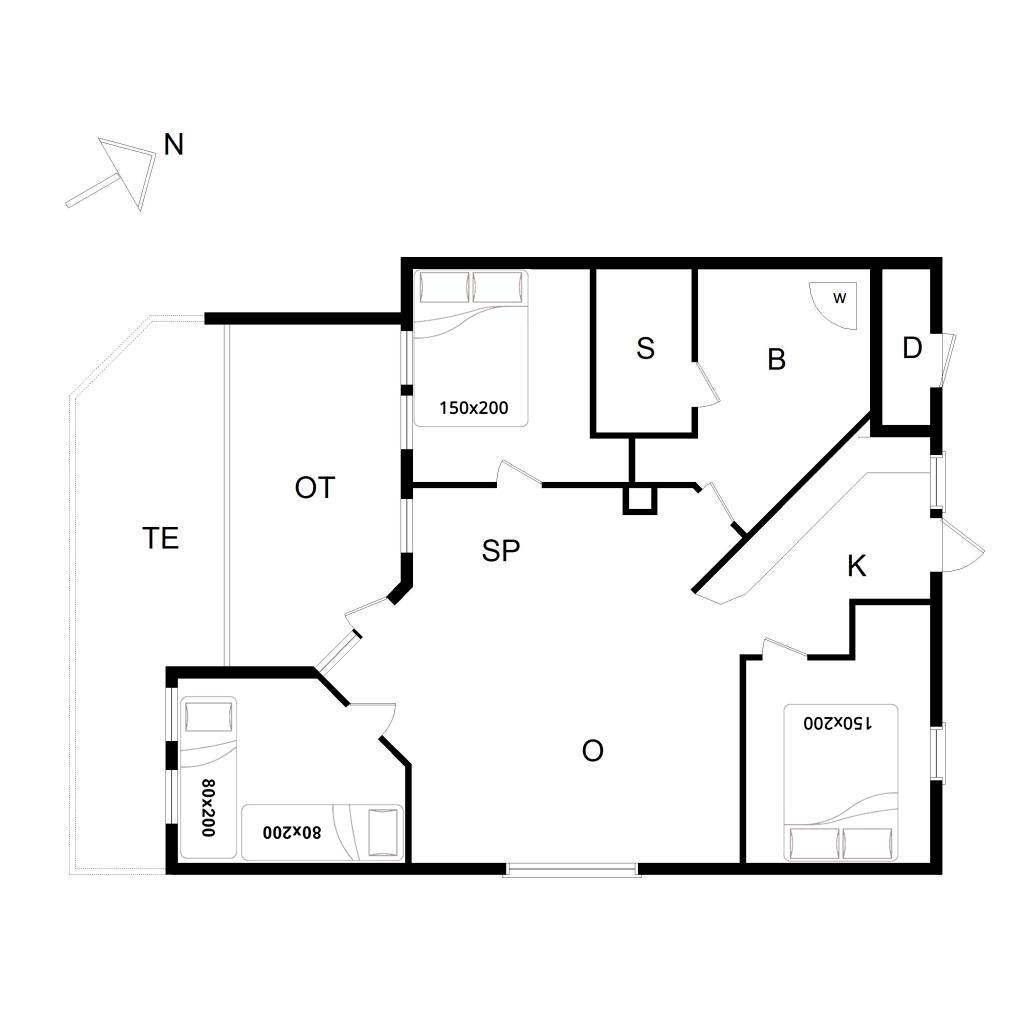 Bettengrösse: 2 Doppelbetten 150 x 200 cm + 2 Einzelbetten 80 x 200 cm.