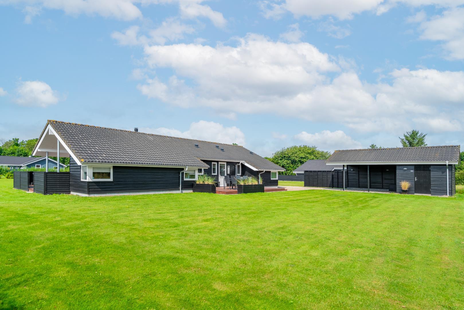 Das Ferienhaus liegt ruhig, aber dennoch zentral im Ferienhausgebiet Jegum Ferieland – nur 400 m vom nächsten Einkaufsladen entfernt. Der Strand ist in ca. 11 km erreichbar, ideal für Tagesausflüge an die Nordsee oder entspannte Stunden in den Dünen.