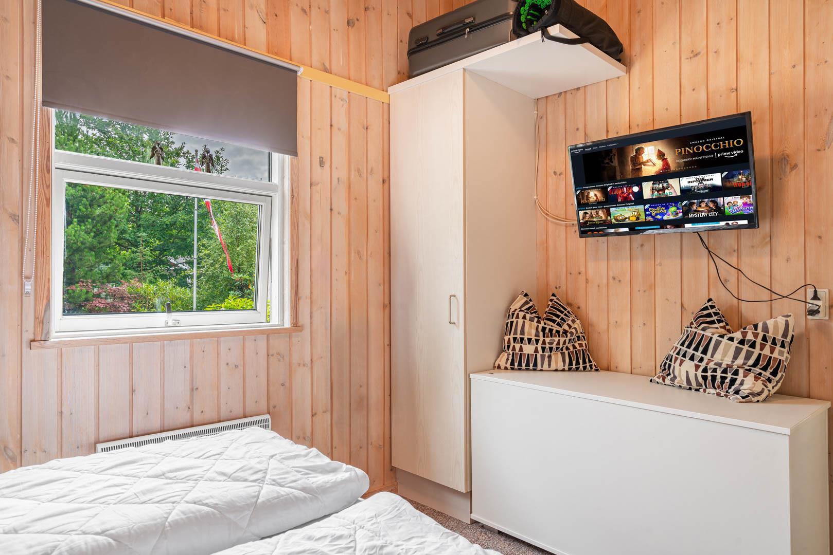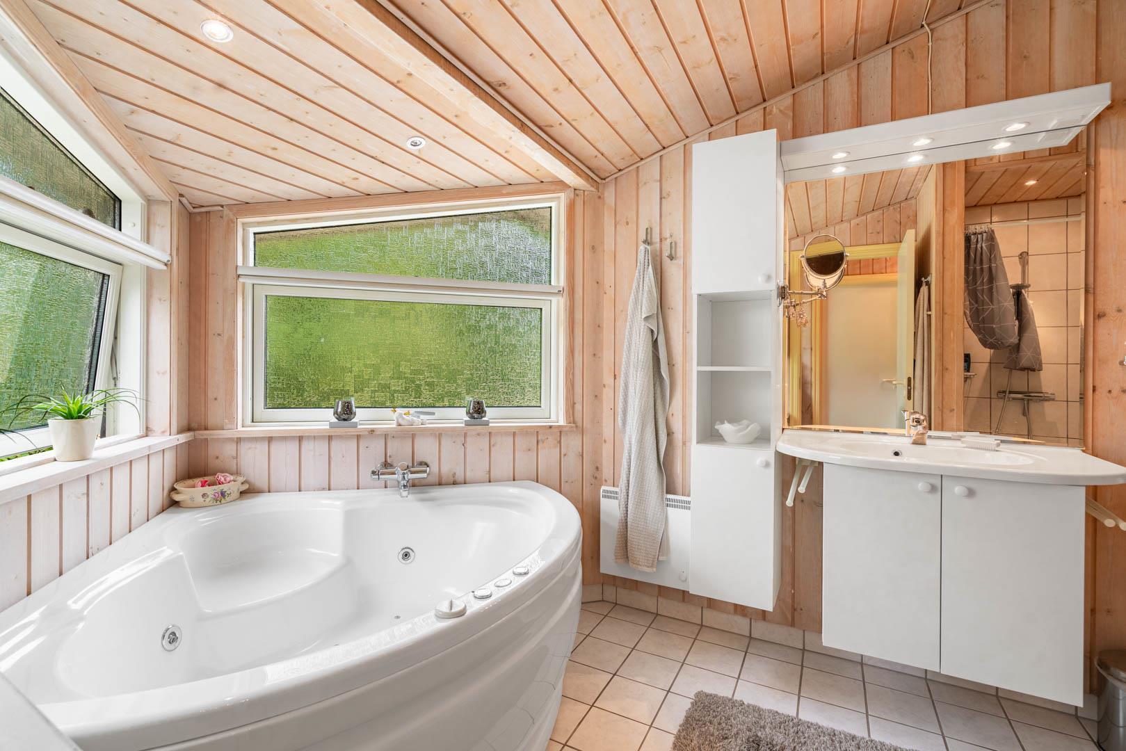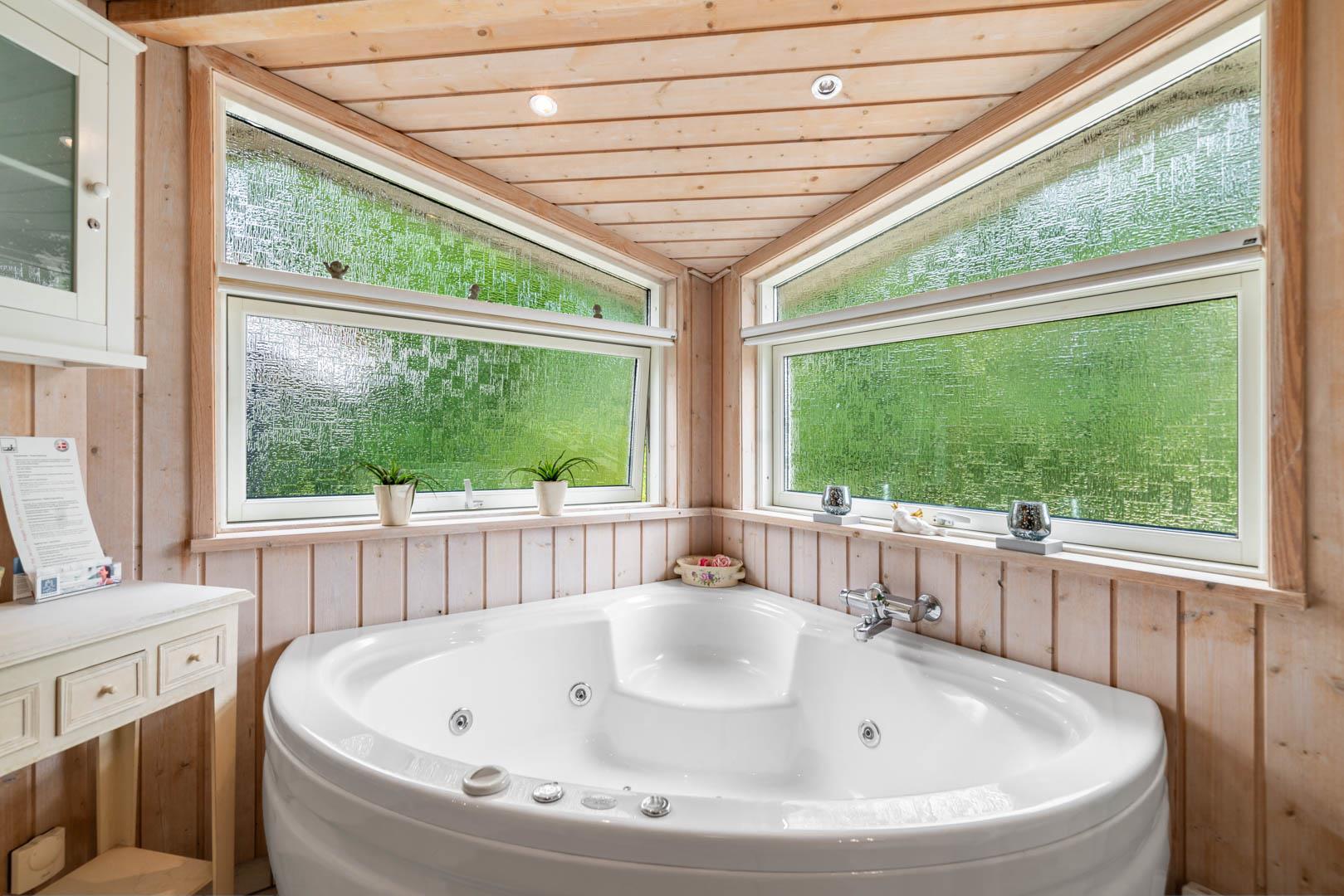 Insgesamt drei Schlafzimmer bieten erholsamen Schlaf: Eines mit Doppelbett, zwei mit jeweils zwei Einzelbetten – ideal für Familien mit Kindern und das moderne Badezimmer ist mit Whirlpool und Sauna ein echtes Wellness-Highlight.