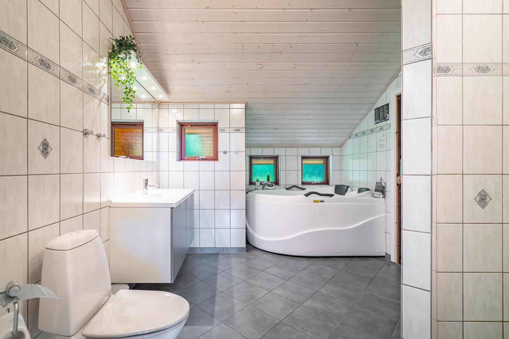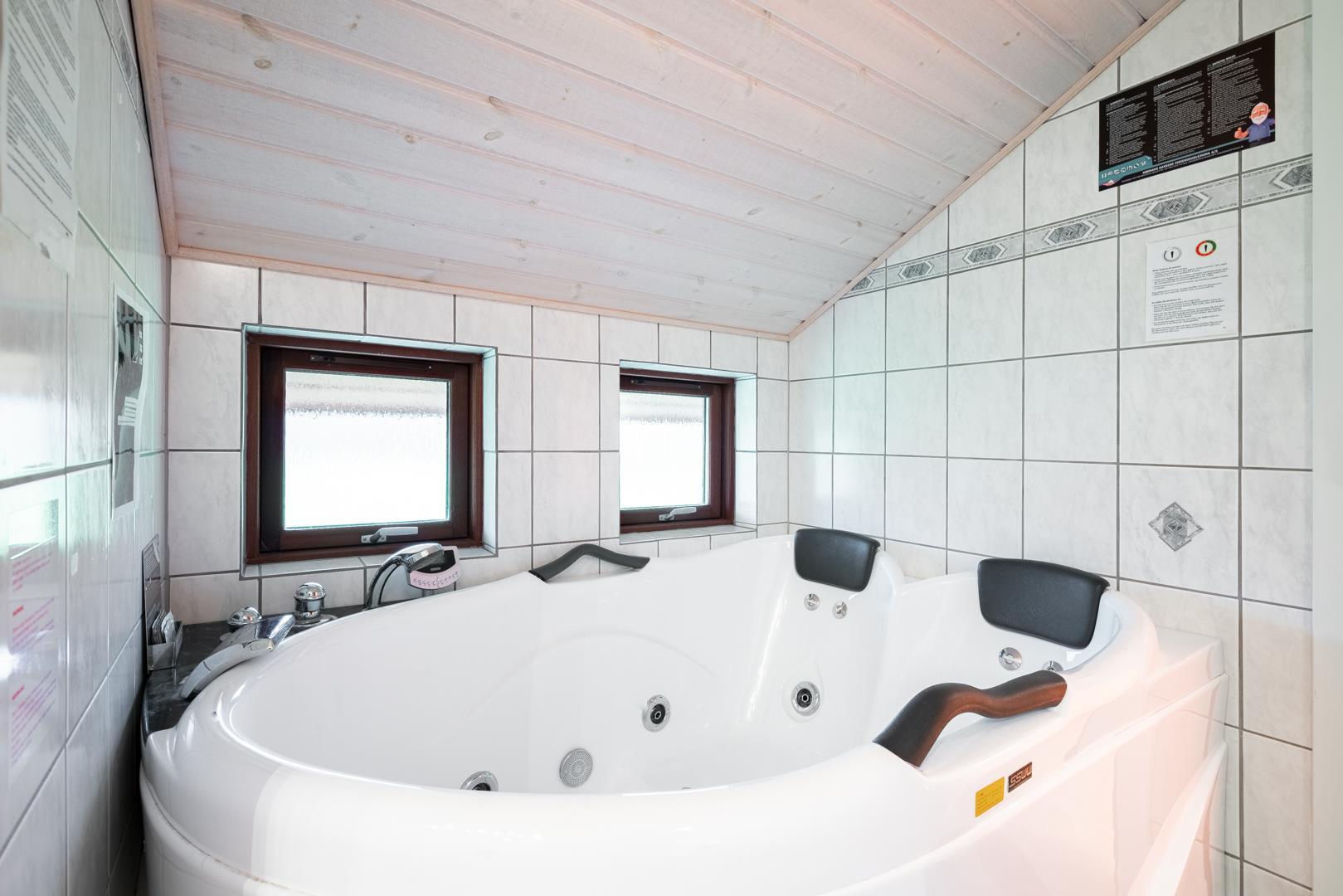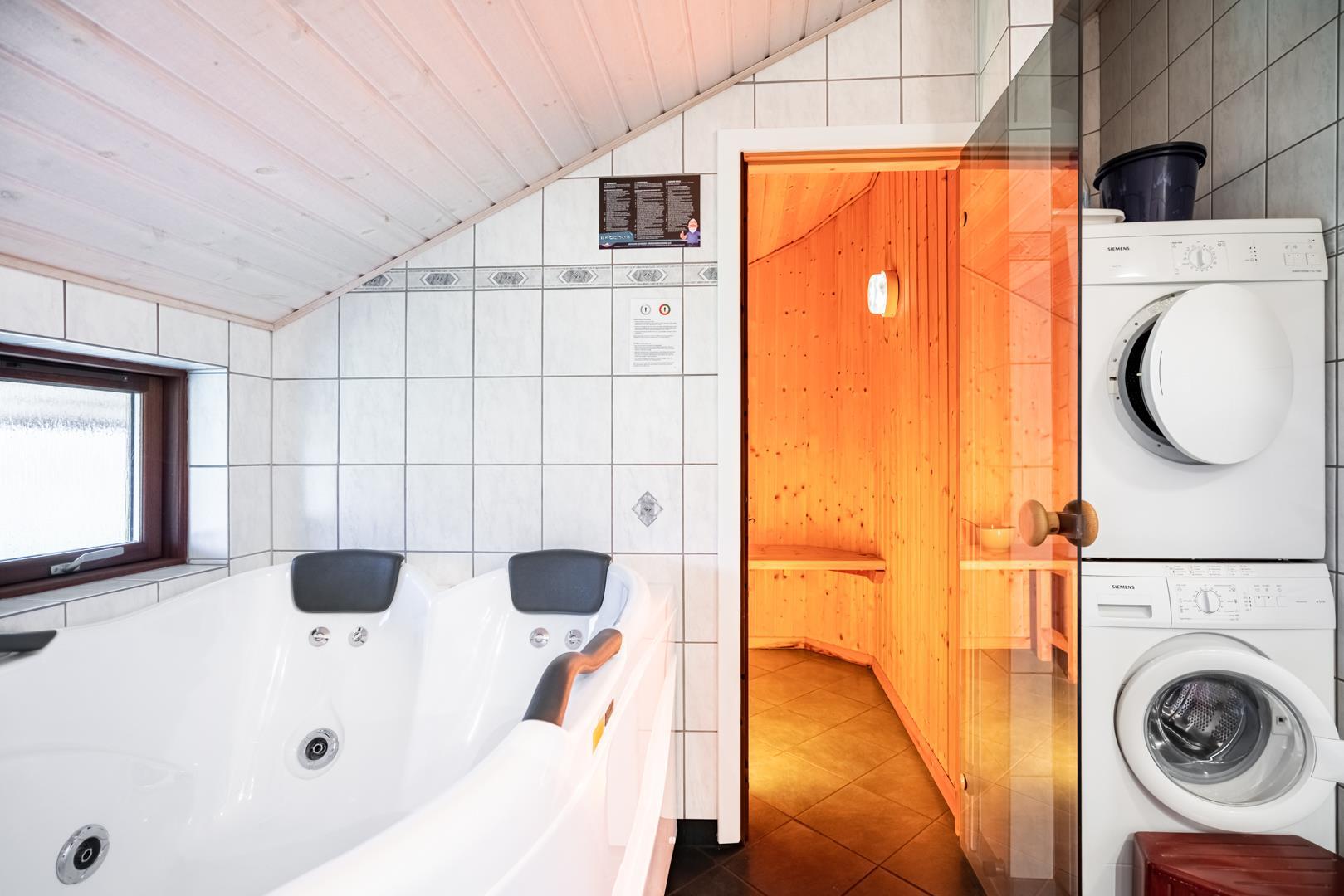 Das Ferienhaus verfügt über 3 Schlafzimmer mit guten Schlafmöglichkeiten für bis zu 6 Personen. Besonders familienfreundlich sind die 2 Badezimmer, beide mit Fußbodenheizung. Hier genießt du zusätzlich Sauna und Whirlpool – perfekt für Wellness im eigenen Ferienhaus. Eine Wickelmöglichkeit macht das Ferienhaus auch für den Urlaub mit Baby attraktiv.