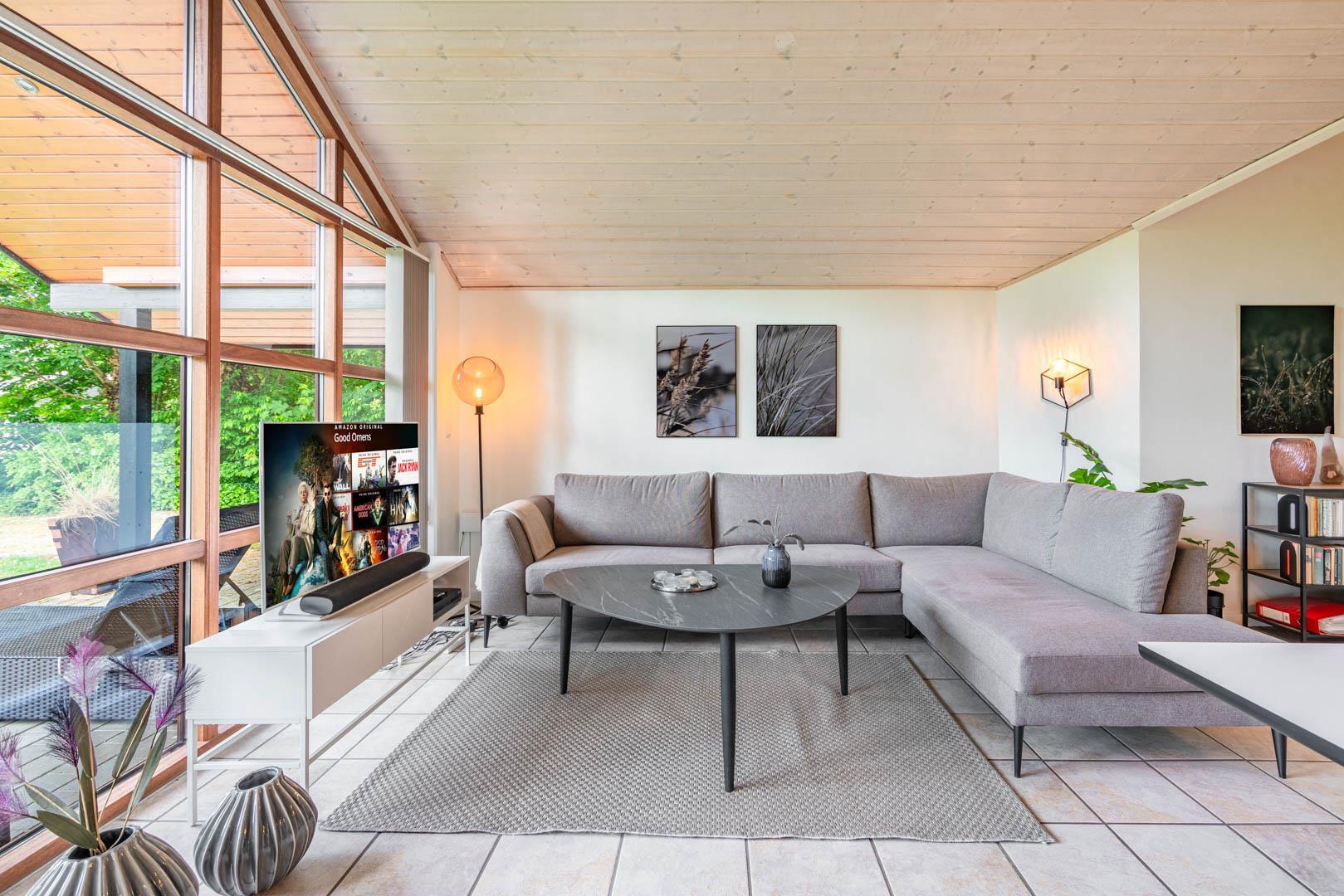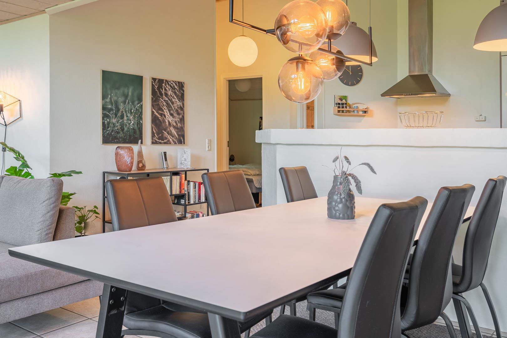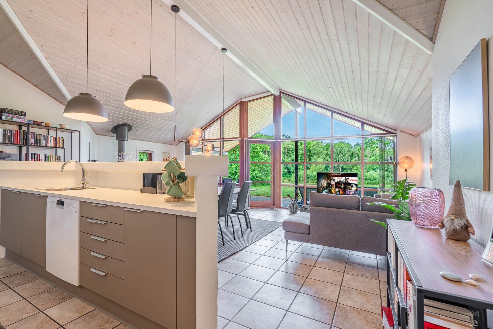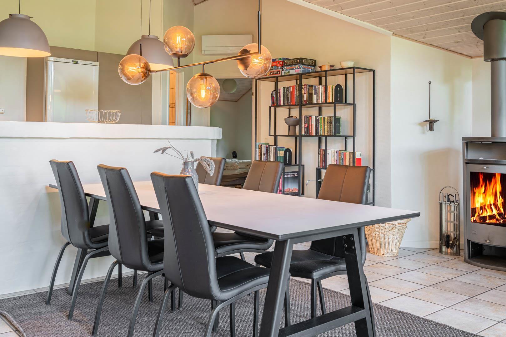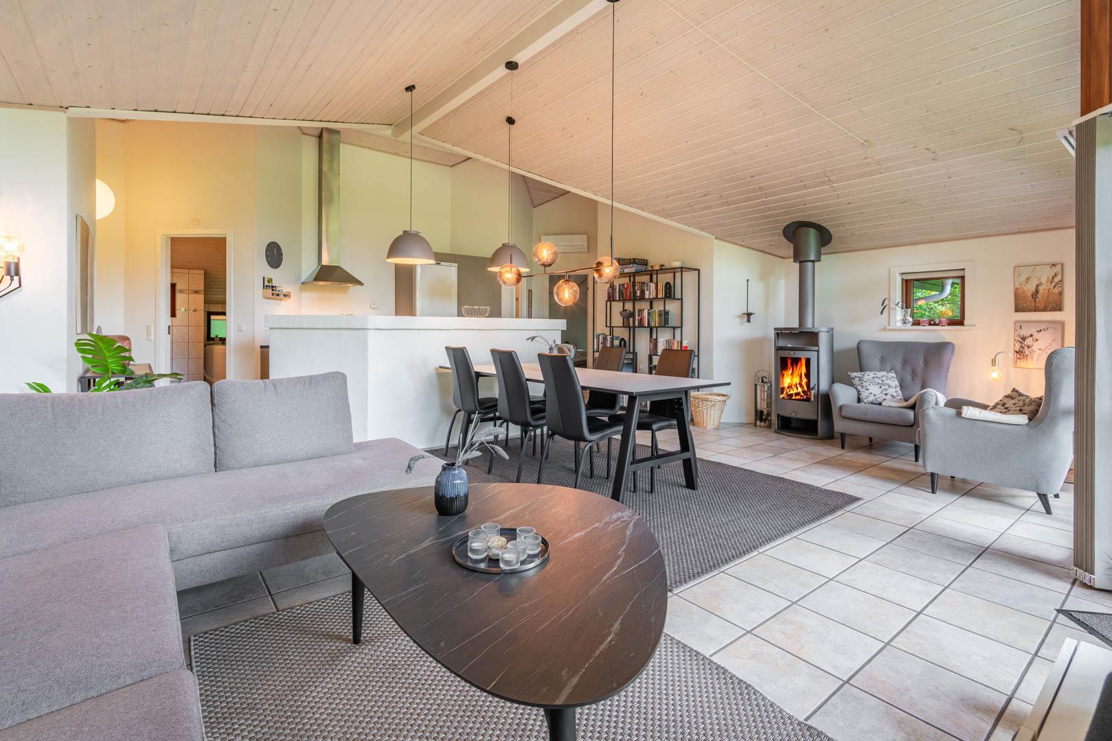 Der offene Wohnbereich ist gemütlich und funktional zugleich. Fußbodenheizung im Wohnzimmer, Kamin, Wärmepumpe und eine Spielkonsole sorgen ganzjährig für Komfort und Unterhaltung. Ob Winterurlaub oder Sommerferien – dieses Ferienhaus in Dänemark ist zu jeder Jahreszeit eine gute Wahl.