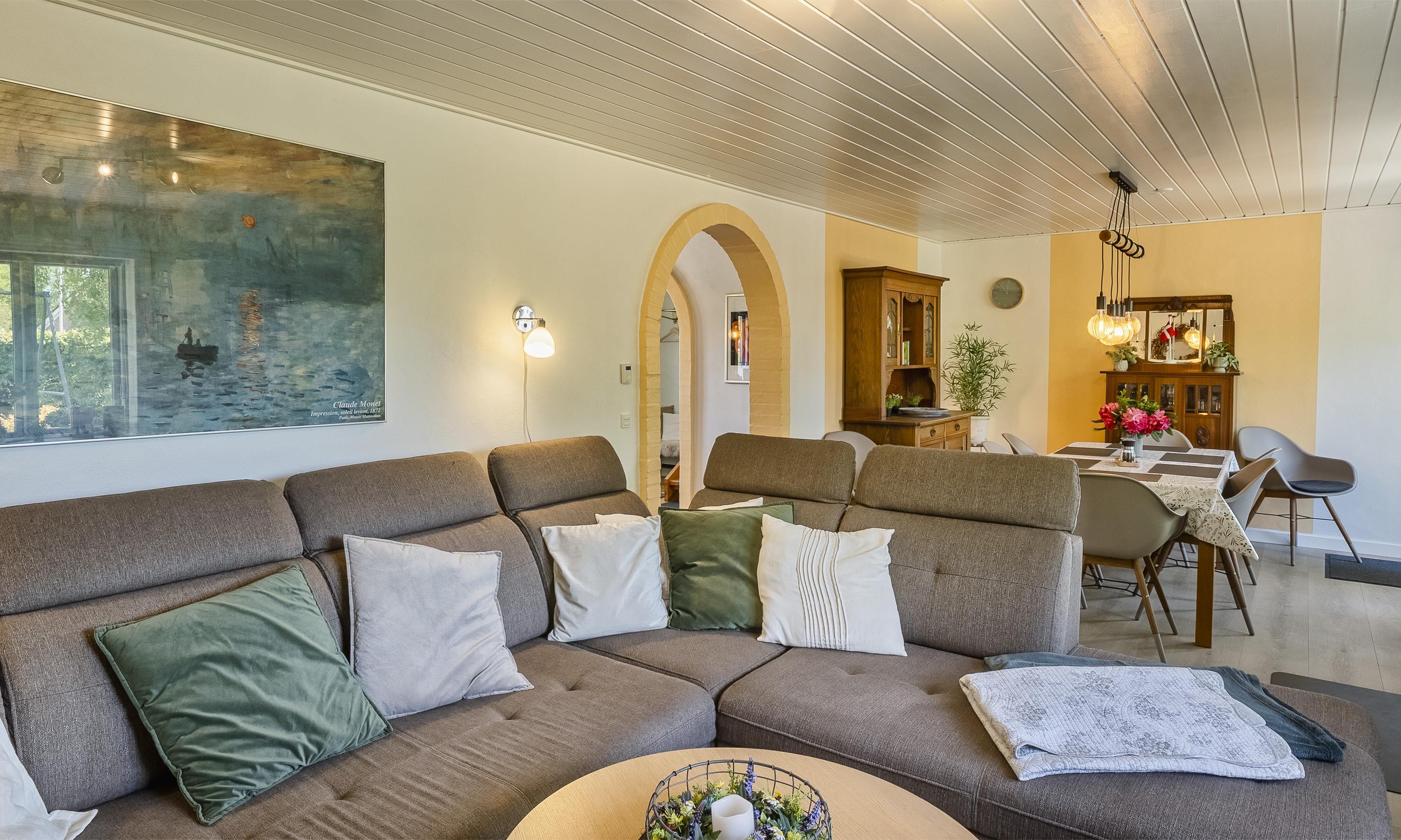 Das helle und freundlich eingerichtete Haus bietet viel Platz für Entspannung und gemeinsames Beisammensein. Der offene Grundriss und die warmen Farbtöne schaffen eine einladende Atmosphäre. Mit Kaminofen, energieeffizienter luft/wasser Wärmepumpe und komfortablen Möbeln ist das Haus ideal für gemütliche Abende nach einem erlebnisreichen Tag. Die durchdachte Ausstattung macht es perfekt für Familien und Paare.