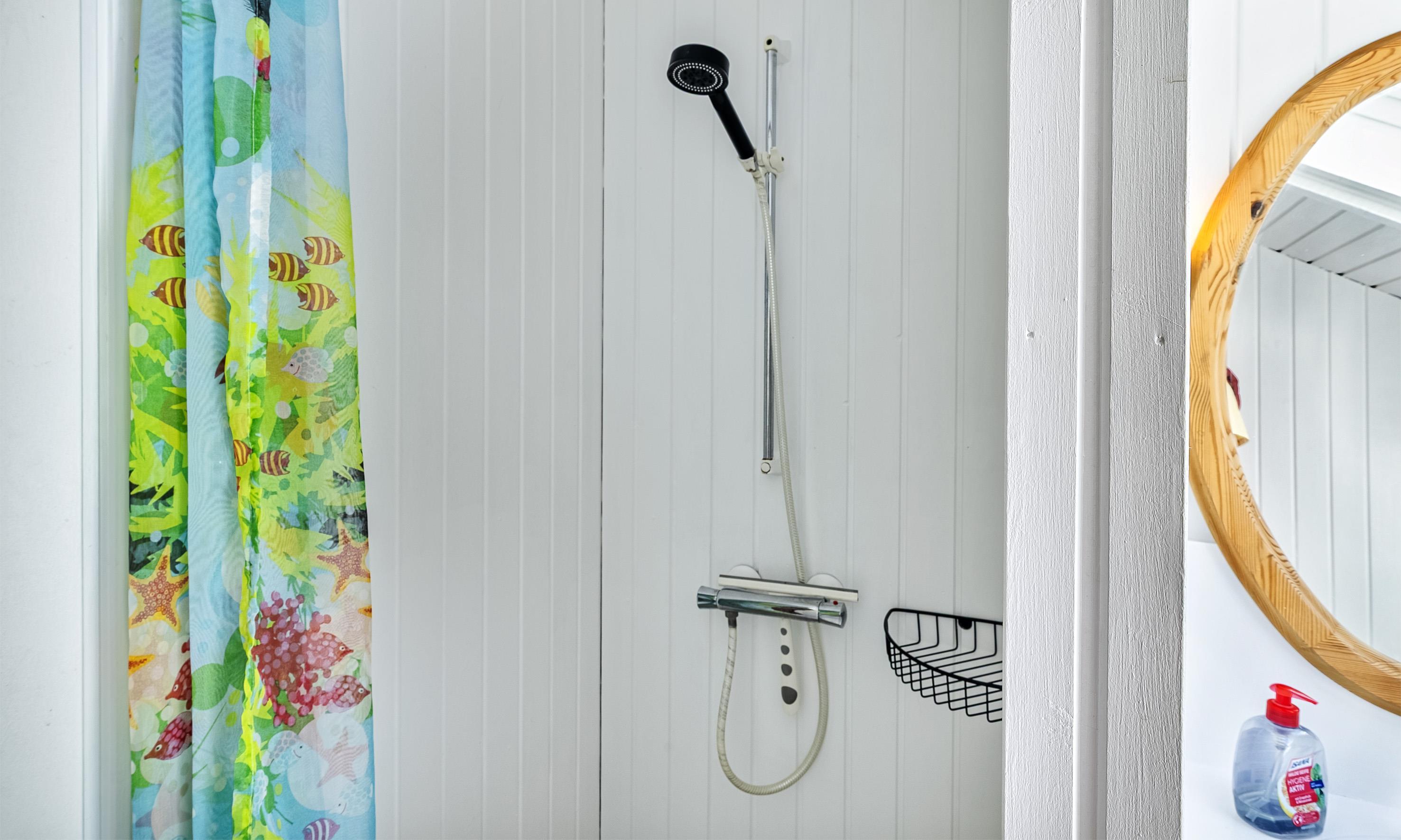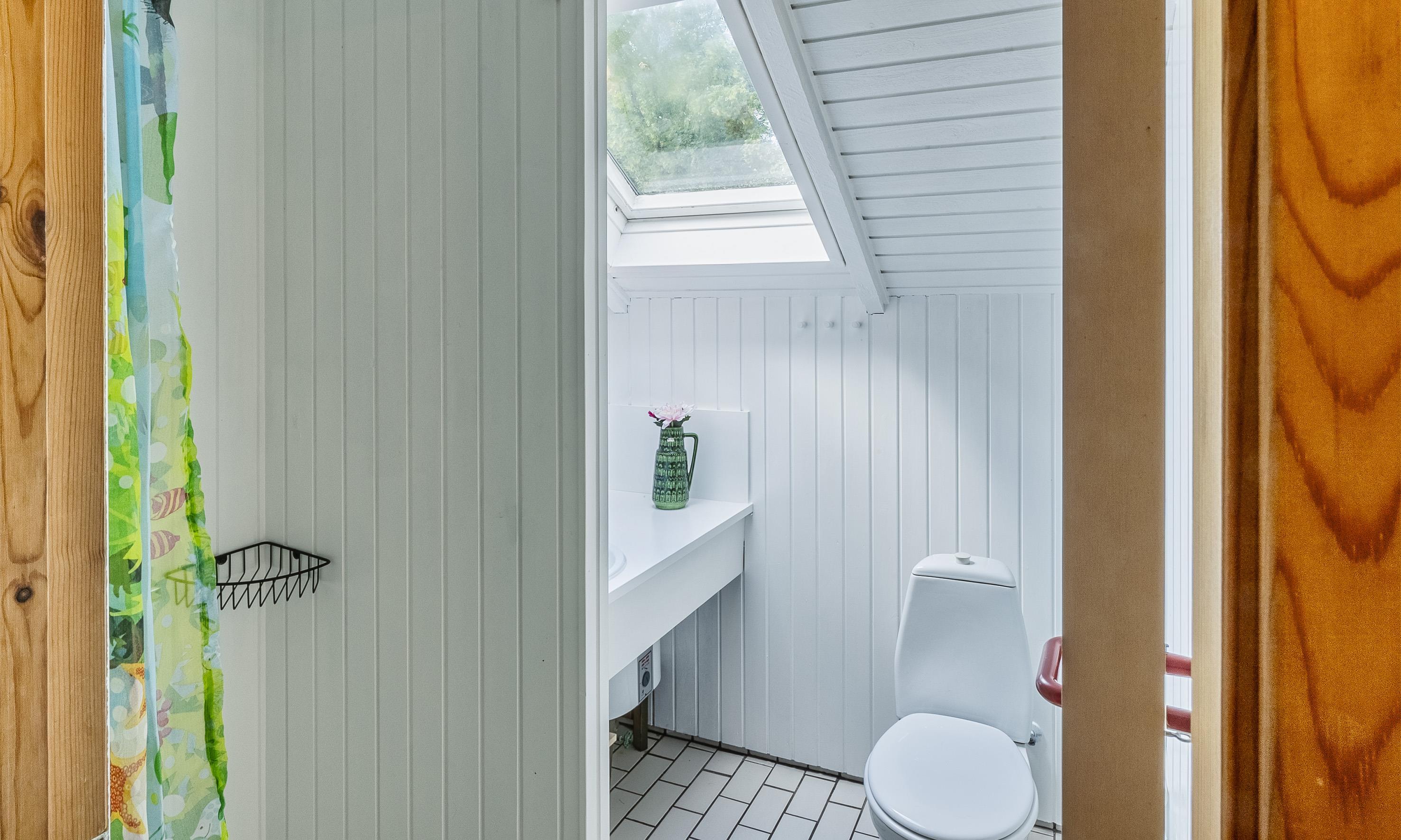 Badezimmer mit Toilette, Dusche und Waschbecken