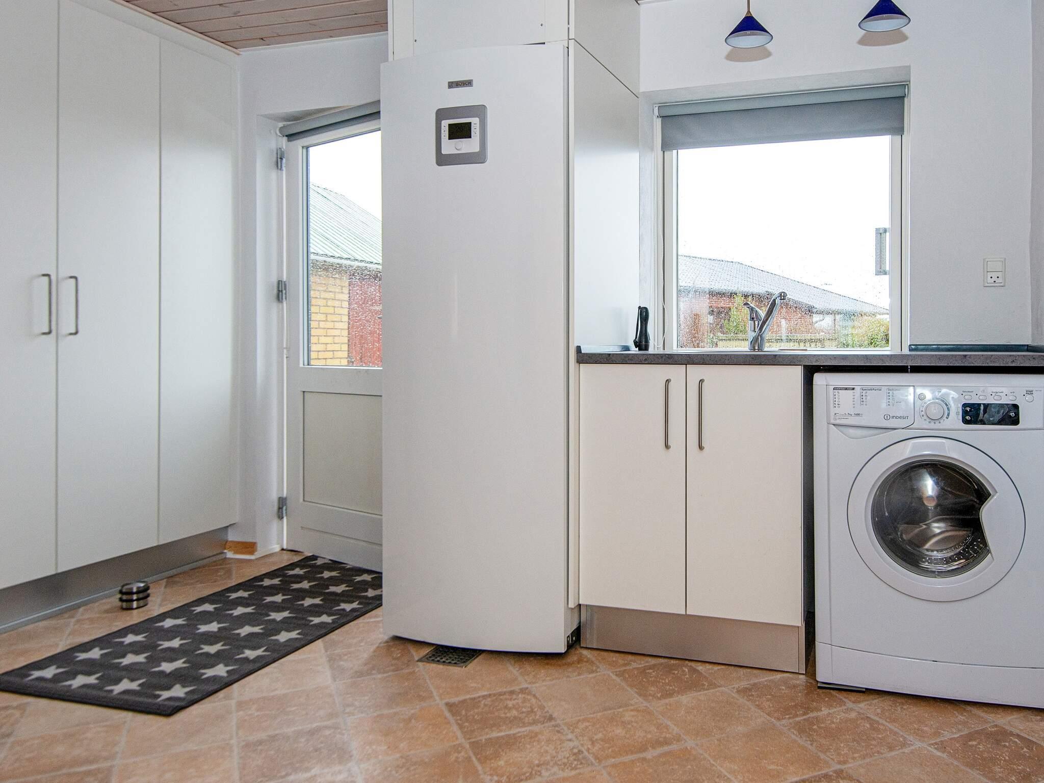 Innen erwarten Sie ein großer Eingangsbereich inklusive Waschmaschine sowie ein offener Küchen-/Wohnbereich mit Holzofen und direktem Zugang zur Terrasse mit Grill und Gartenmöbel zur Verfügung. Außerdem stehen zwei Schlafzimmer mit Doppelbett bzw. zwei Einzelbetten sowie ein schönes Badezimmer mit Dusche und Fußbodenheizung bereit.