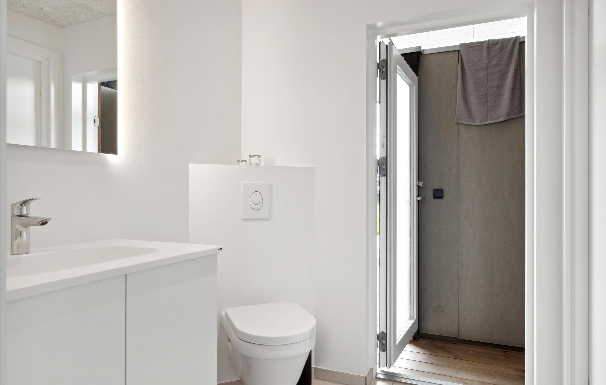 Modernes, strandnahes Ferienhaus mit finnischem Holzbad und großem Garten in Nordborg, Dänemark.