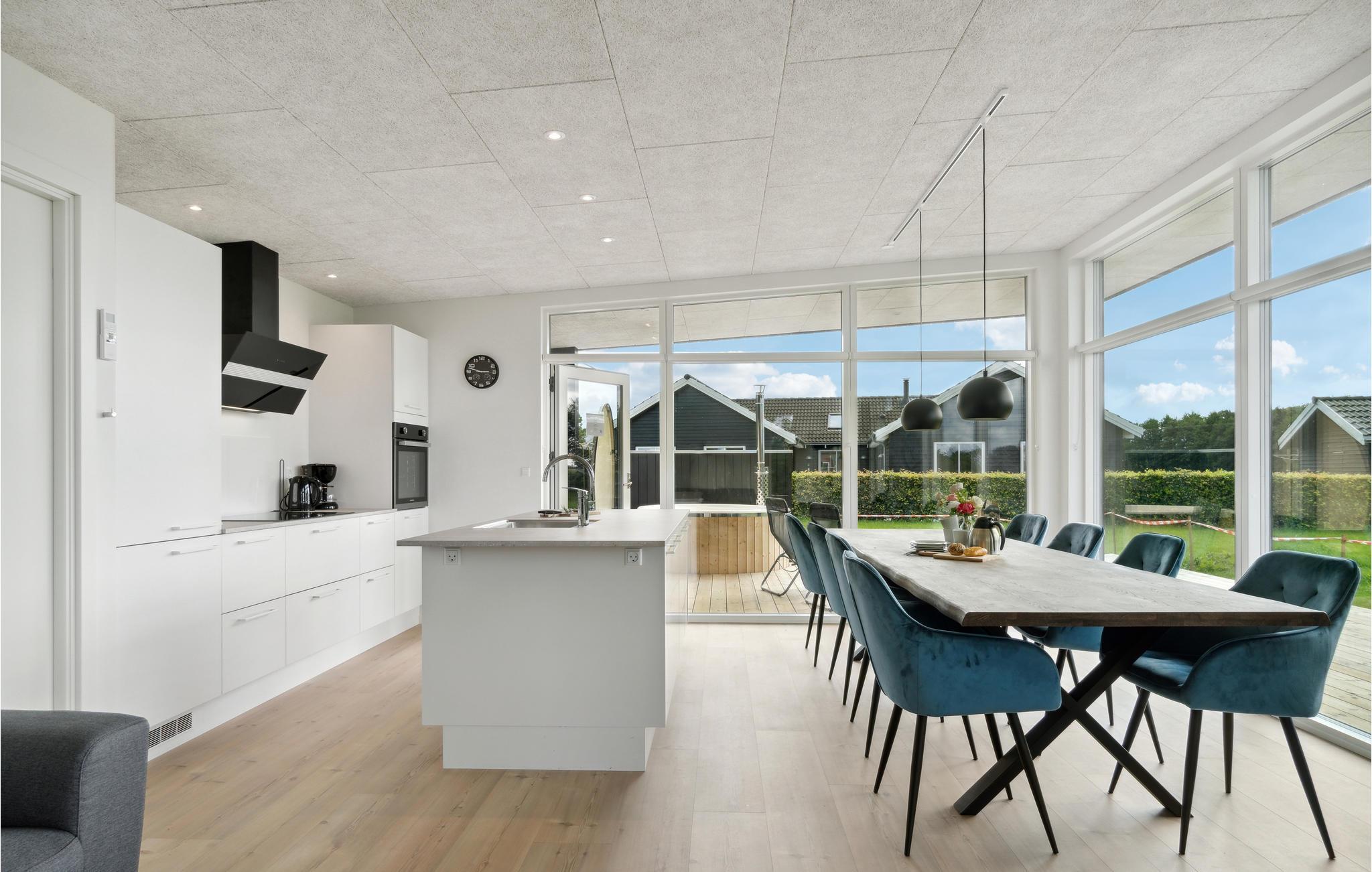 Hier können Sie sich mit Ihren Lieben häuslich einrichten und es wird Ihnen im Urlaub an nichts fehlen. Die hellen Räume mit moderner Einrichtung und aparten Holzbalken schaffen eine behagliche Wohlfühlatmosphäre im Haus. Bodentiefe Fenster sorgen dafür, dass Sie den schönen Blick auf die Landschaft voll auskosten können. Freuen Sie sich auf Entspannung in stilvollem Ambiente und gemeinsame Mahlzeiten am langen Esstisch. Machen Sie es sich am Ende eines herrlichen Tages im Wohnbereich zusammen gemütlich und plaudern Sie bis spät in den Abend.