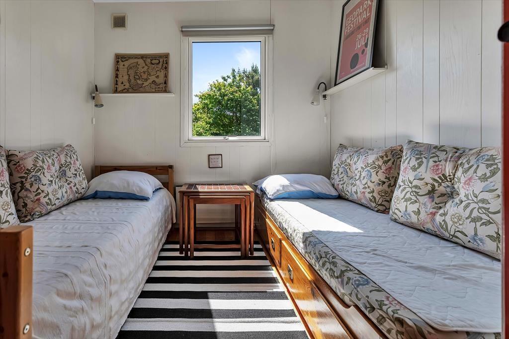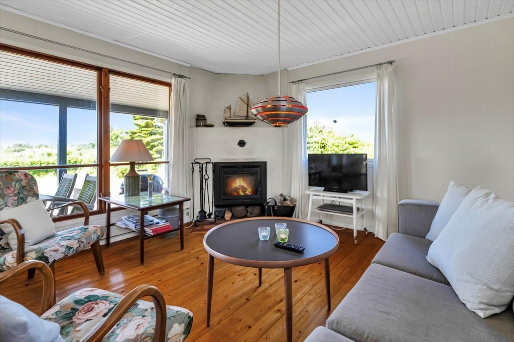 Dieses ältere Ferienhaus liegt hoch in der Landschaft. Von Teilen deines Grundstücks blickst du auf die Sejerøbucht. In der teilweise offenen Küche bereitest du die Mahlzeiten zu und kannst dich, während das Essen auf dem Herd gart, auf dem Diwan niederlassen. Die Mahlzeiten genießt du mit deinen Lieben am mitten im Wohnraum platzierten Esstisch, von dem du durch die großen Terrassenfenster hinaus in Freie blickst. Stimmungsvoll und gemütlich geht es auf dem Sofa und auf den älteren Sitzmöbeln im hellen Wohnraum zu. Hier genießt du angeregte Gespräche, einen frischen Becher Kaffee und lange Lesestunden mit Blick auf das flackernde Feuer im eingebauten Kaminofen.