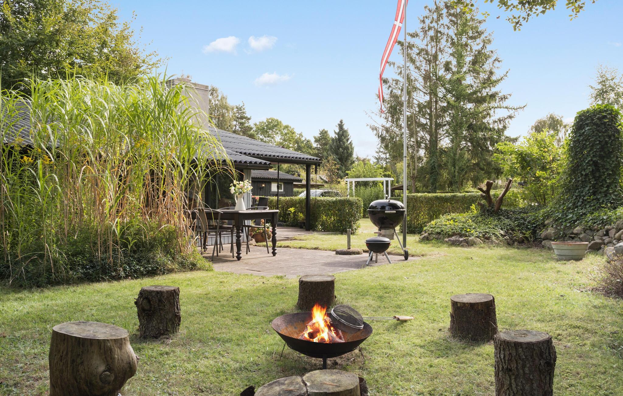 Auf diesem Grundstück erwarten Sie viel Ruhe und eine grüne Umgebung. Hier kann die ganze Familie den Alltag hinter sich lassen. Im Inneren des Hauses herrscht eine gemütliche Atmosphäre mit Holzelementen in warmen Farben. Versammeln Sie sich um den Esstisch und genießen Sie die schöne Aussicht auf den Garten, während das Feuer im Kamin stimmungsvoll prasselt.