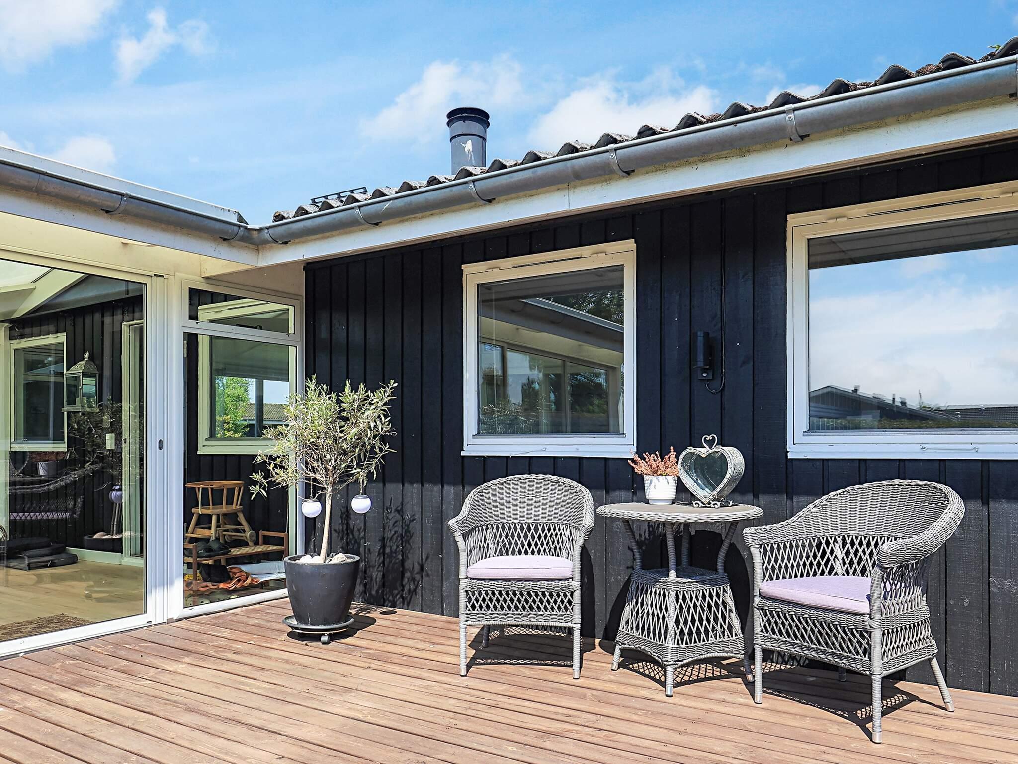 Ferienhaus von 68 m² Größe, aufgeteilt in zwei Zimmer, Bad und offener Küchen-/Wohnbereich für das Familienleben. Vom Wohnzimmer aus haben Sie Zugang zu einem schönen Wintergarten, der zusätzliche Sitzgelegenheiten und angenehmes Licht bietet, während Ihnen draußen eine nach Westen ausgerichtete Terrasse die Möglichkeit gibt, den ganzen Nachmittag und Abend die Sonne zu genießen. Es gibt einen separaten Anbau auf dem Grundstück, der Platz für 2 Übernachtungsgäste bietet.
