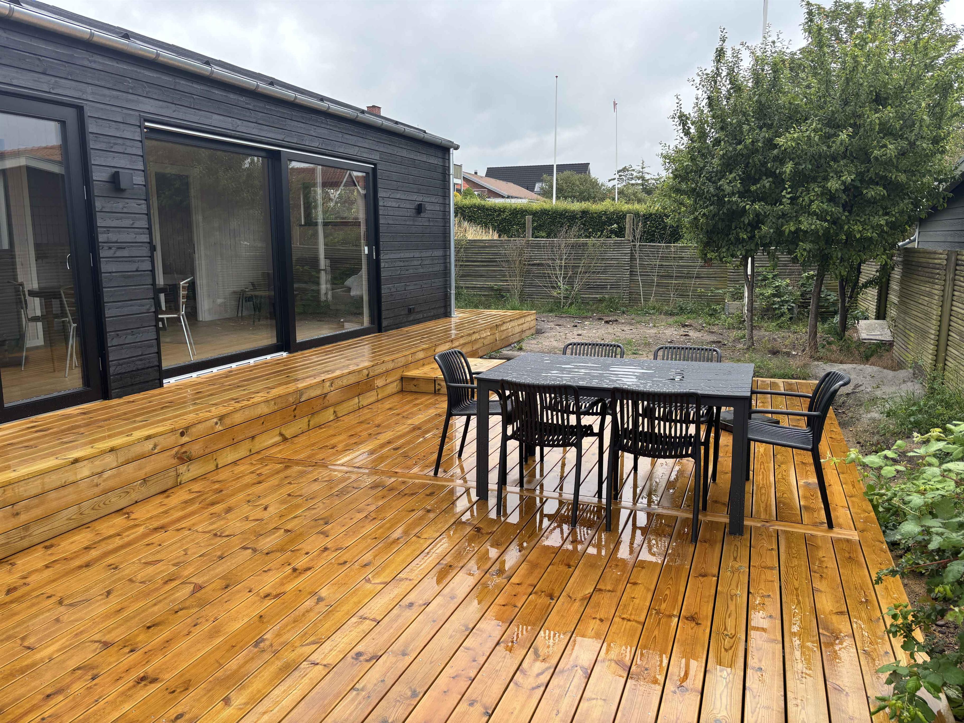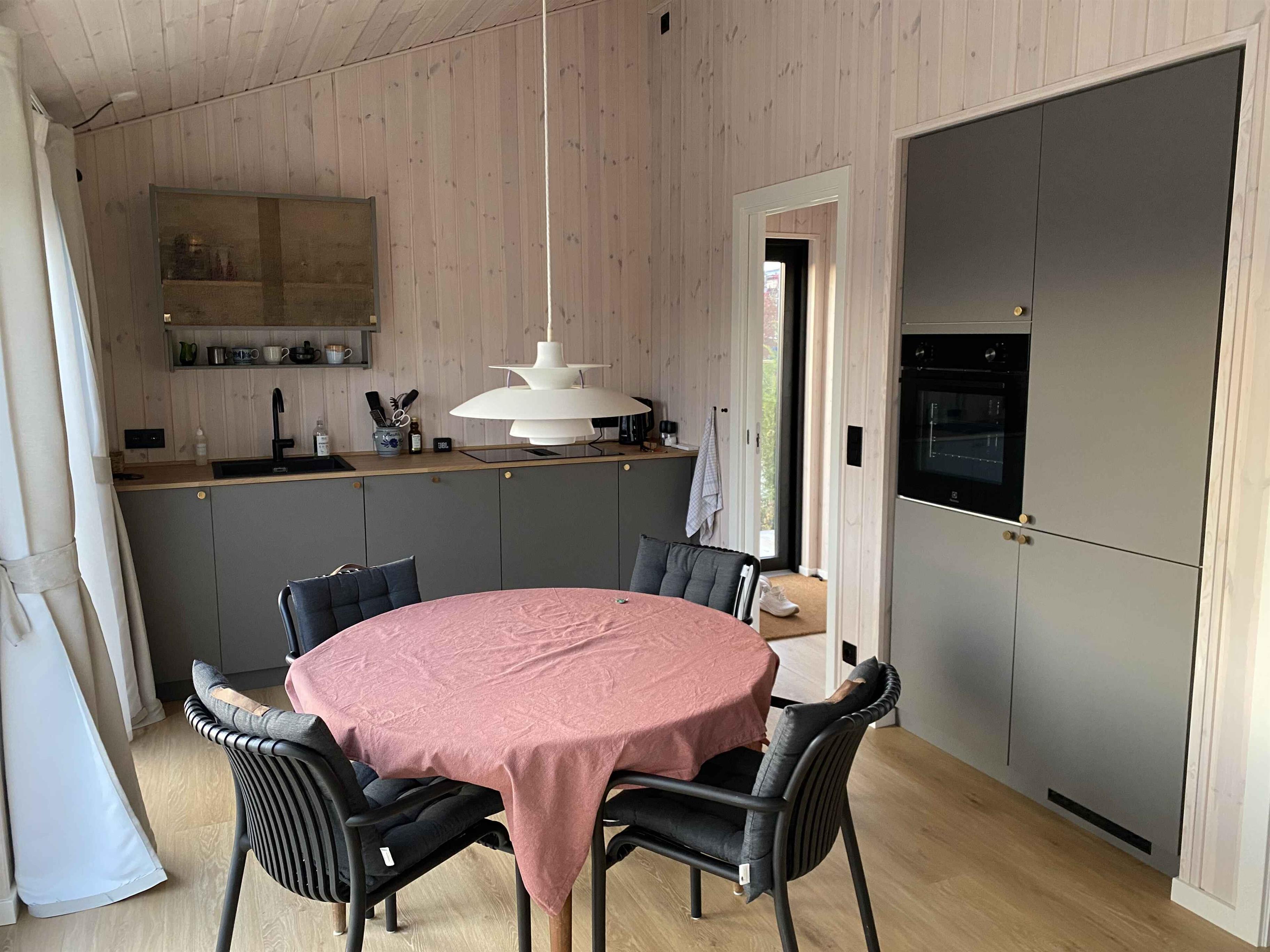 Dieses schöne Ferienhaus bietet den idealen Rahmen für einen entspannten und angenehmen Urlaub in ruhiger und charmanter Umgebung. Das Ferienhaus ist gut eingerichtet und auf Gemütlichkeit ausgelegt. Die einladende Küche ist offen mit dem Wohnzimmer verbunden, und eine Schiebetür führt direkt auf die große, nach Süden ausgerichtete Terrasse, auf der Sie den ganzen Tag die Sonne genießen können. Die Terrasse hat eine kleine Stufe. Es gibt zwei gemütliche Schlafzimmer: eines mit Doppelbett und eines mit zwei Einzelbetten, alle mit hochwertigen Matratzen. Das moderne Badezimmer verfügt über Dusche, Toilette und Waschmaschine. Nach dem Strand können Sie den Sand in der Außendusche hinter dem Haus abspülen. Der kleine Rasen bietet Platz zum Spielen und Entspannen. Die Lage ist hervorragend. In Karrebæksminde erwarten Sie wunderschöne Natur, tolle Rad- und Wanderwege, kinderfreundliche Strände und eine lebendige Sommeratmosphäre entlang des Kanals – alles in kurzer Entfernung. Dies ist der perfekte Ort für alle, die Ruhe, Nähe und echte Sommerstimmung suchen. Achtung: Wird nicht für gewerbliche Nutzung vermietet.