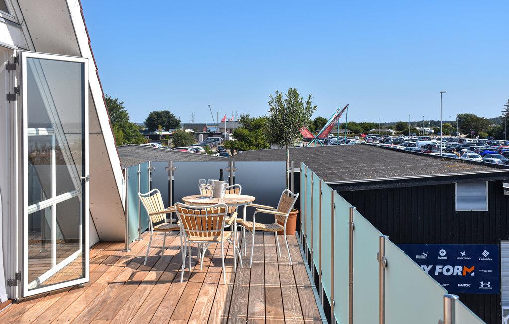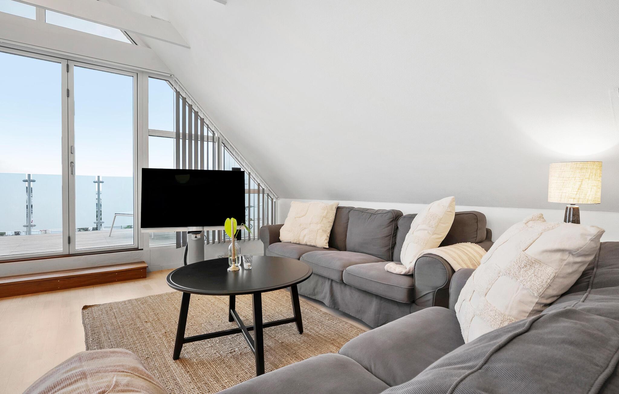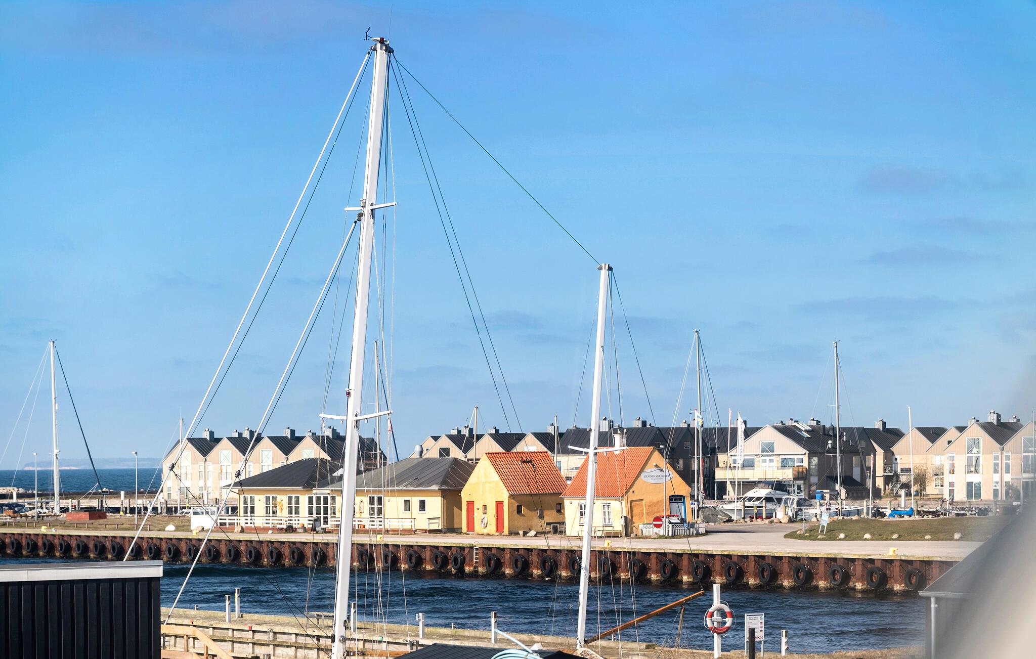 Moderne Ferienwohnung mit Panoramablick auf Strand und Hafen in Karrebæksminde.