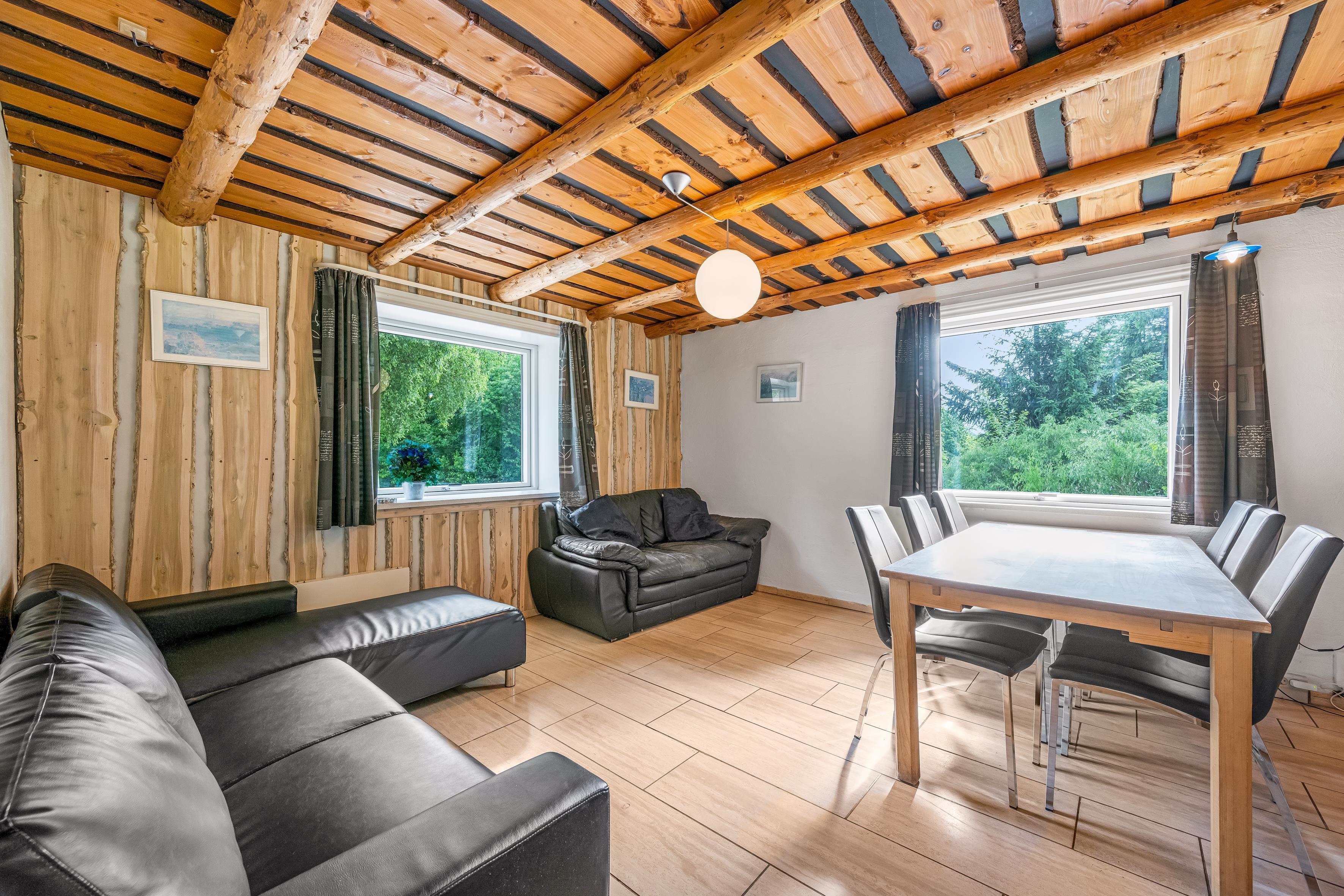 Die Küche ist komplett mit modernen Geräten ausgestattet, darunter Mikrowelle, Cerankochfeld, Backofen, Geschirrspüler, Gefrierschrank und Kühlschrank. So können Sie ganz einfach köstliche Mahlzeiten für die ganze Gruppe zubereiten. Das große Wohnzimmer verfügt über einen Holzofen, der eine gemütliche Atmosphäre schafft, in der Sie sich abends treffen, Geschichten austauschen und Pläne für den nächsten Tag schmieden können.