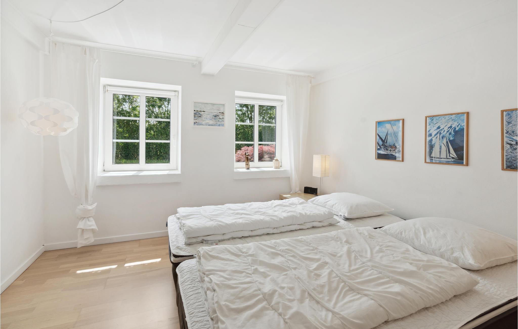Das idyllisch anmutende Ferienhaus liegt auf der Halbinsel Kegnæs. Vom Haus, der Terrasse und vom Balkon haben Sie eine schöne Aussicht auf das Meer. Die gut ausgestatte Küche ist zum Wohnzimmer offen, wo auch ein Kaminofen steht. Zwei der drei Schlafzimmer liegen im Obergeschoss. Zum Surfen im Internet steht Ihnen im ganzen Haus Wi-Fi zur Verfügung. Kegnæs hat ausgezeichnete Sandstrände und diese liegen nicht weit vom Haus. Sie finden schöne Dünen und Senken, im Sand können Sie Muscheln finden. An der Küste können Sie auch gut angeln: Lachs, Dorsch, Scholle und Hornfisch. Mit Augustenborg Slot (1770) liegt auch ein sehenswertes Schloss in der Region. Es gehört auch ein Schlosspark mit sehenwerter Kirche dazu.
