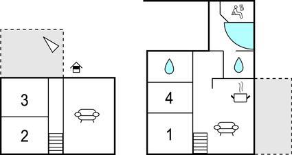 Badezimmer (nr. 1) - WC. Warmes und kaltes Wasser. Dusche