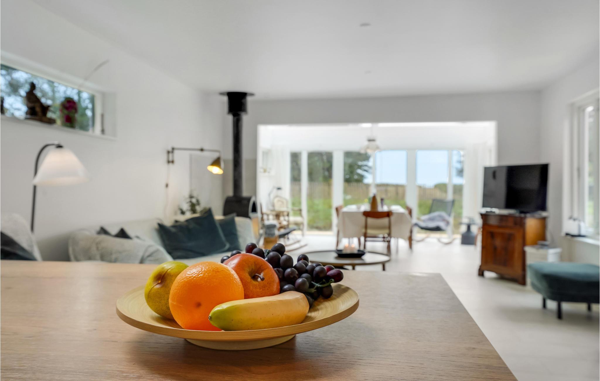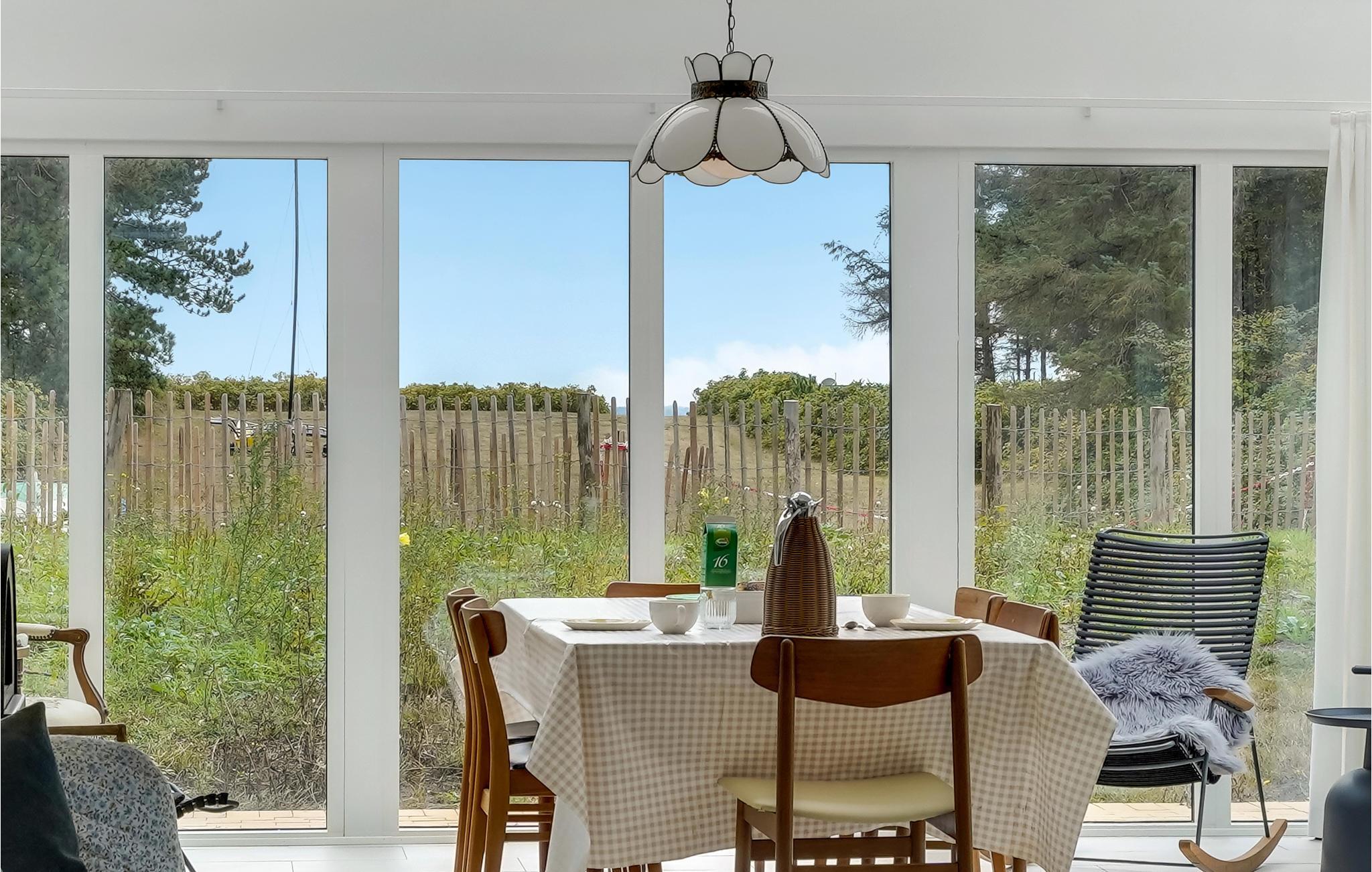 Dieses schöne und lichtdurchflutetet Ferienhaus ist das ideale zuhause für Ihren Strandurlaub auf der Insel Kegnæs. Hier können Sie sich wohlfühlen und als Familie zusammen viel Zeit verbringen. Der großzügige und moderne Wohnraum ist das Herzstück des Hauses und wird Ihr natürlicher Treffpunkt sein. Von dem Essbereich, mit großer Fensterfront können Sie das Meer sehen. Eine schöne große Terrasse bietet Ihnen den optimalen Platz sich in der Sonne zu entspannen oder Ihre Lieblingsspeisen auf dem Grill zuzubereiten und gemeinsam am Esstisch einzunehmen.
