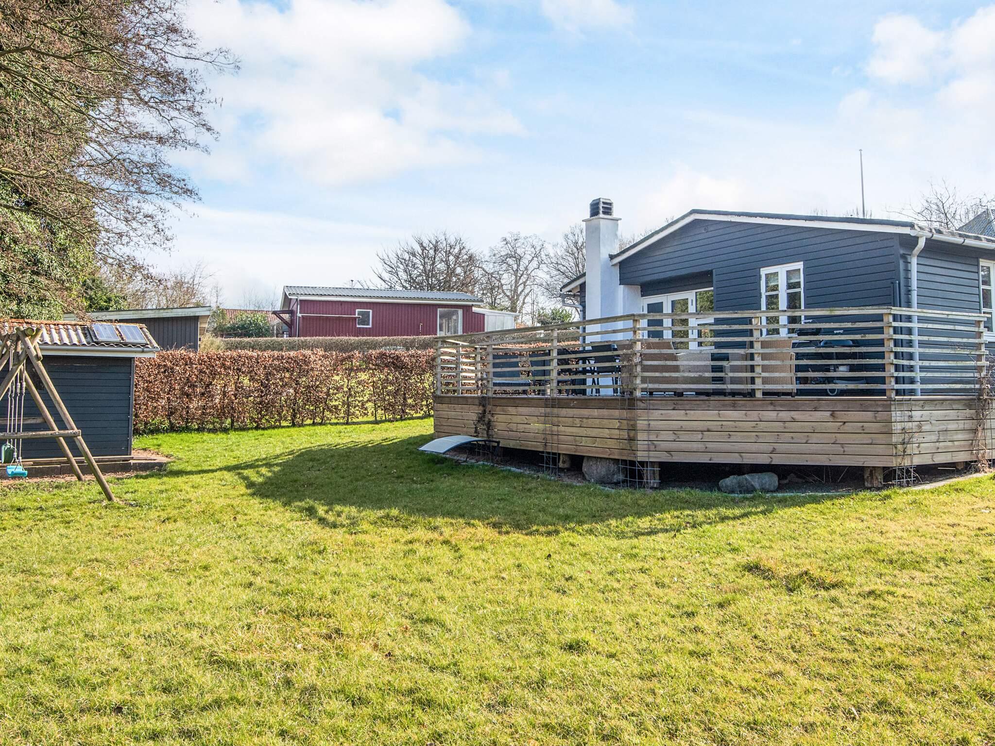 Dieses familienfreundliche Ferienhaus am Kelstrup Strand hat einen hellen, nach Südwesten ausgerichteten Wintergarten mit gemütlichen Sitzgelegenheiten, in dem man auch kühlere Abende verbringen kann. Das Haus befindet sich auf einem 805 m2 großen Rasengrundstück mit Schaukel, Sandkasten und Fußballtor zum Zeitvertreib für Kinder.