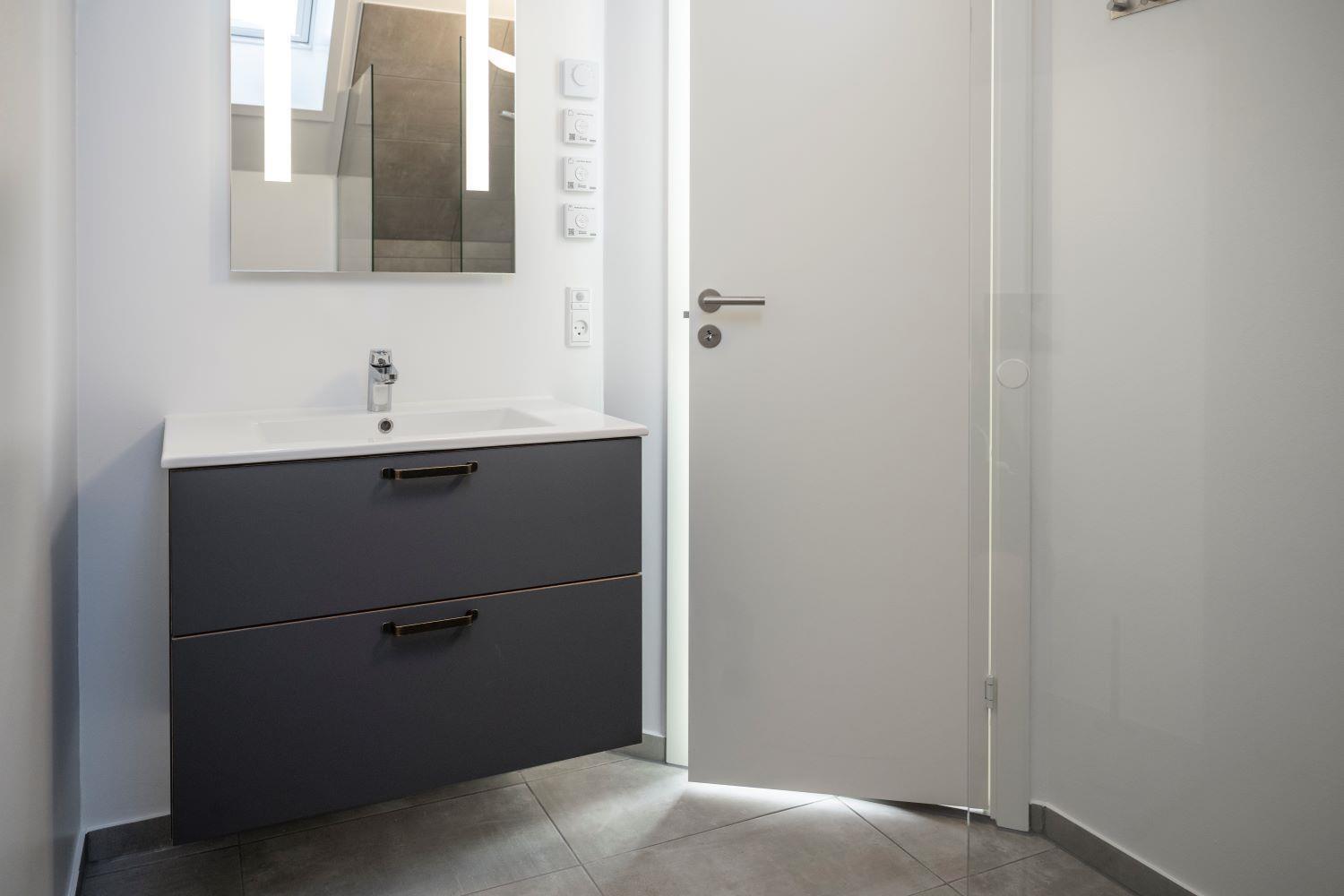 Die Wohnung erstreckt sich über das 1. und 2. Obergeschoss und ist mit Fokus auf Komfort und Qualität eingerichtet. Im 1. Stock gibt es ein helles Wohnzimmer mit Smart-TV (nur Streaming), eine gut ausgestattete Küche, ein Badezimmer mit Fußbodenheizung sowie ein Schlafzimmer mit einem Einzelbet. Im 2. Stock gibt es ein weiteres Badezimmer mit Fußbodenheizung und zwei Schlafzimmer mit jeweils einem Doppelbett.