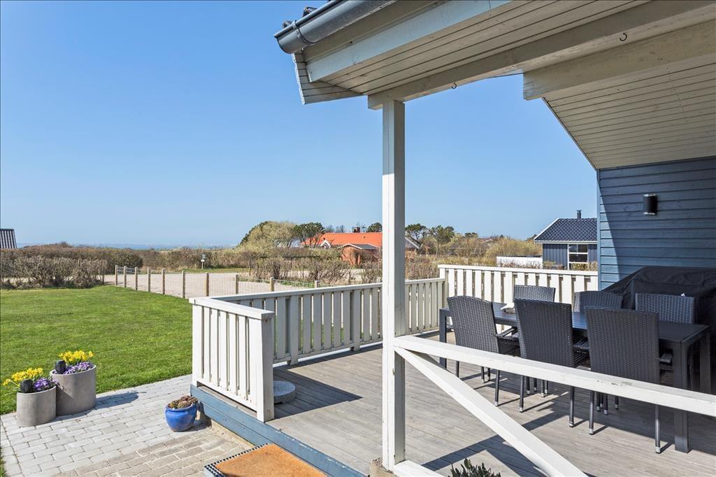 Von der nach Südwesten gerichteten Terrasse und dem Wohnzimmer des Hauses aus, können Sie den Schiffsverkehr auf der Nordsee beobachten und ganzjährig das wunderbare Licht sowie den Gang der Jahreszeiten bestaunen. Ein Teil der Terrasse ist überdacht. Gute Gartenmöbel, Liegestühle, Sonnenschirm sowie ein großer Steingrill sind vorhanden. Das Haus steht auf einem gepflegten Wiesengrundstück mit Sandkasten und Schaukel für die Kleinen. Ein wirklich kinderfreundliches Ferienhaus.