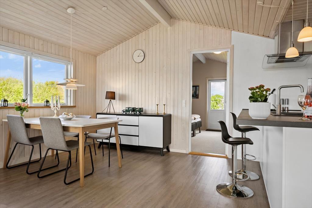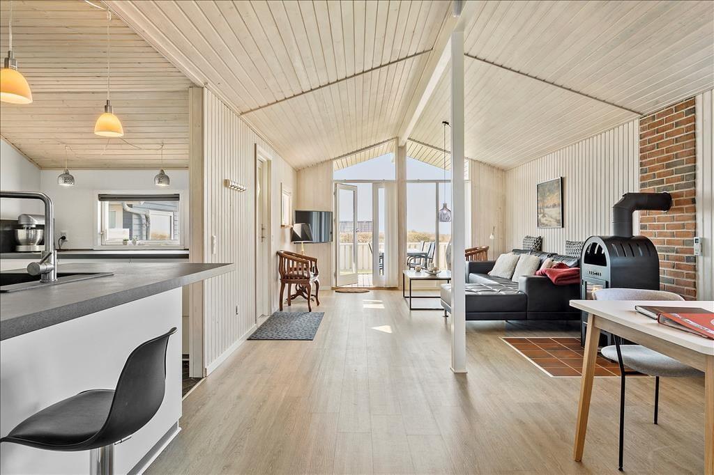Das Haus ist hell und gut eingerichtet sowie sehr gepflegt. Das Haus wurde in 2020 durchgehend renoviert. Das Schlafzimmer ist sehr groß, eine Art Masterschlafzimmer, mit sehr viel Schlafplatz und Stauraum. Außerdem gibt es ein weiteres Schlafzimmer mit einem Doppelsofa und eines mit zwei Einzelbetten. Der Wohnbereich ist hübsch und gemütlich eingerichtet und hat einen funktionalen Kamin. Die helle, gut ausgestattete Küche befindet sich in offener Verbindung zum Wohnzimmer und bietet reichlich Platz zum Zubereiten der Mahlzeiten, während man gleichzeitig am Familiengeschehen teilhaben kann. Das Badezimmer ist praktisch eingerichtet.