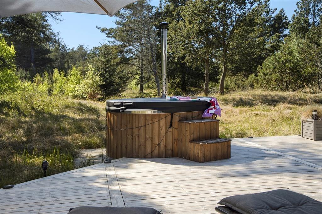 Dieses tolle Ferienhaus am Kjul Strand ist zu Fuß ist nur wenige Minuten von der Nordsee entfernt und ebenfalls in nur einigen Minuten mit dem Auto erreicht ihr die Hafenstadt Hirtshals. Es sprechen allerdings viele gute Gründe dafür, viel Zeit im und am Haus zu verbringen, das mit einem guten Aktivitätsraum und einer schönen Wellnessausstattung - drinnen wie draußen - zu glänzen weiß.