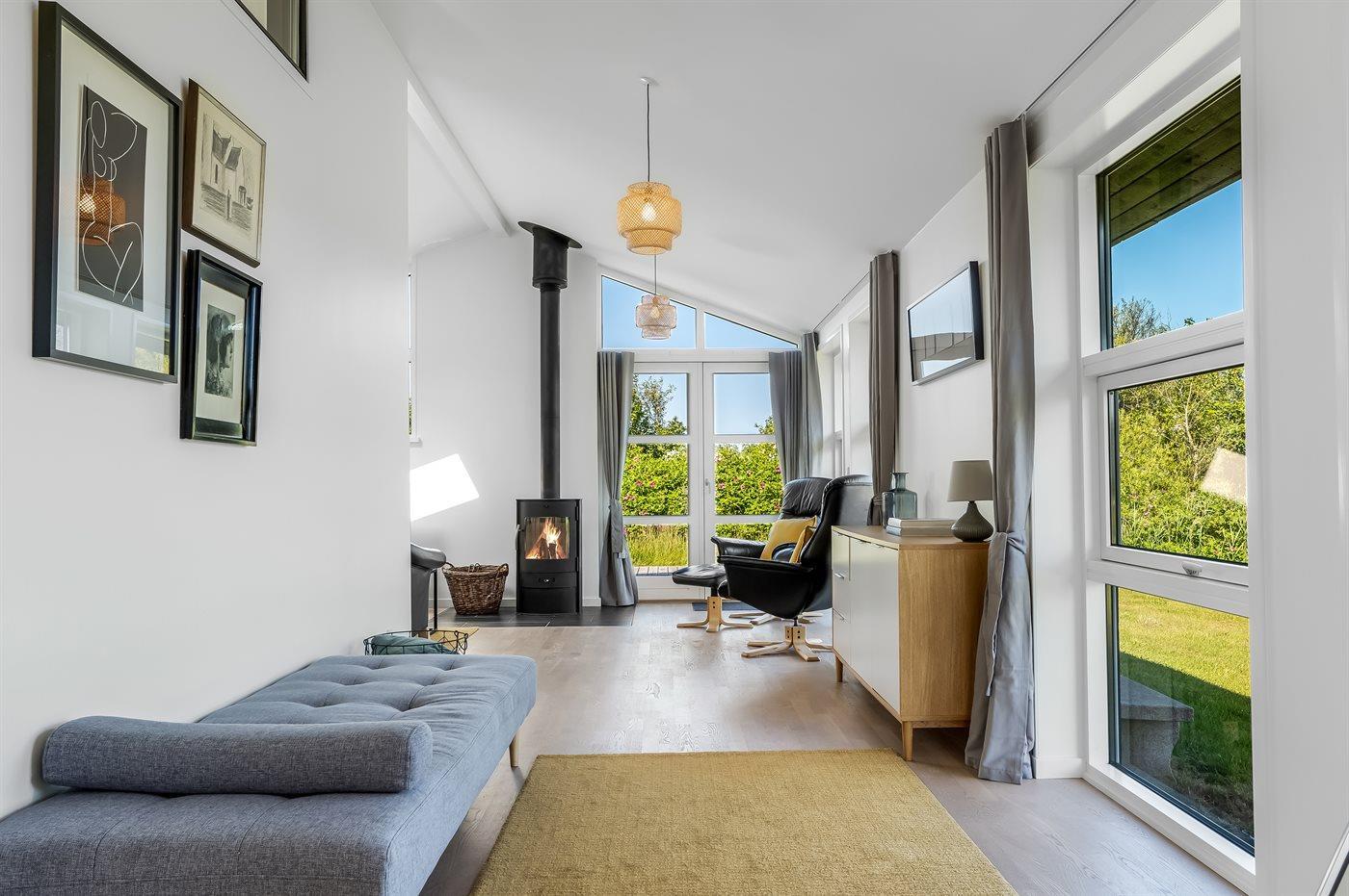 Modernes Ferienhaus in Kjul mit Meerblick und Naturgrundstück, ideal für Familien und Haustiere.