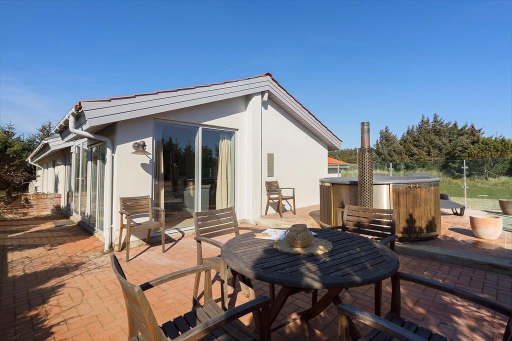 Das Leben im Freien kann du auf mehreren schönen Terrassen genießen, die das Ferienhaus umgeben. Hier hast du sowohl offene als auch überdachte Bereiche, du wirst immer einen Platz in der Sonne oder im Schatten finden – ganz nach deinen Wünschen und Vorstellungen. Das Naturgrundstück bietet dir einen Urlaub mit Natur pur. Denn hier draußen ist es wunderschön, das Singen der Vögel zu erleben und die frische Meeresbrise vom Westenmeer her zu spüren. Genieße deinen Frühstückskaffe schon morgens im Freien und plane die Erlebnisse des Tages - auch das Abendessen kannst du unter freiem Himmel servieren, vielleicht gibt es sogar Zubereitungen vom Grill? Ebenfalls die vierbeinigen Urlauber werden den Naturgrund ums Haus lieben, denn es gibt es Platz für Freilauf und viel zu Schnüffeln.