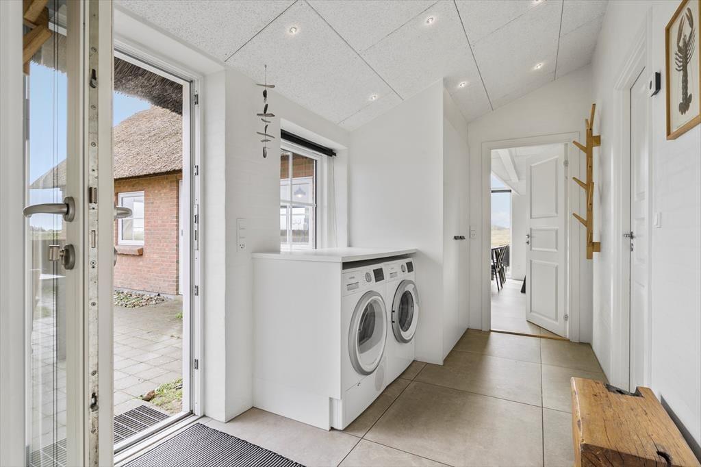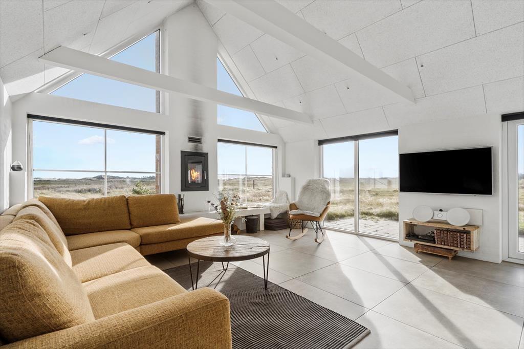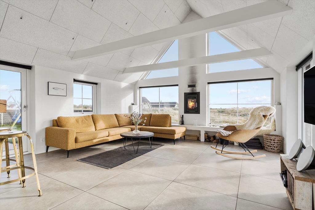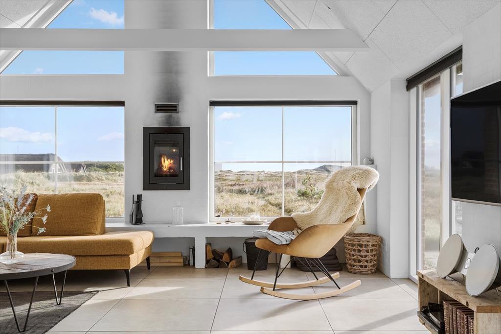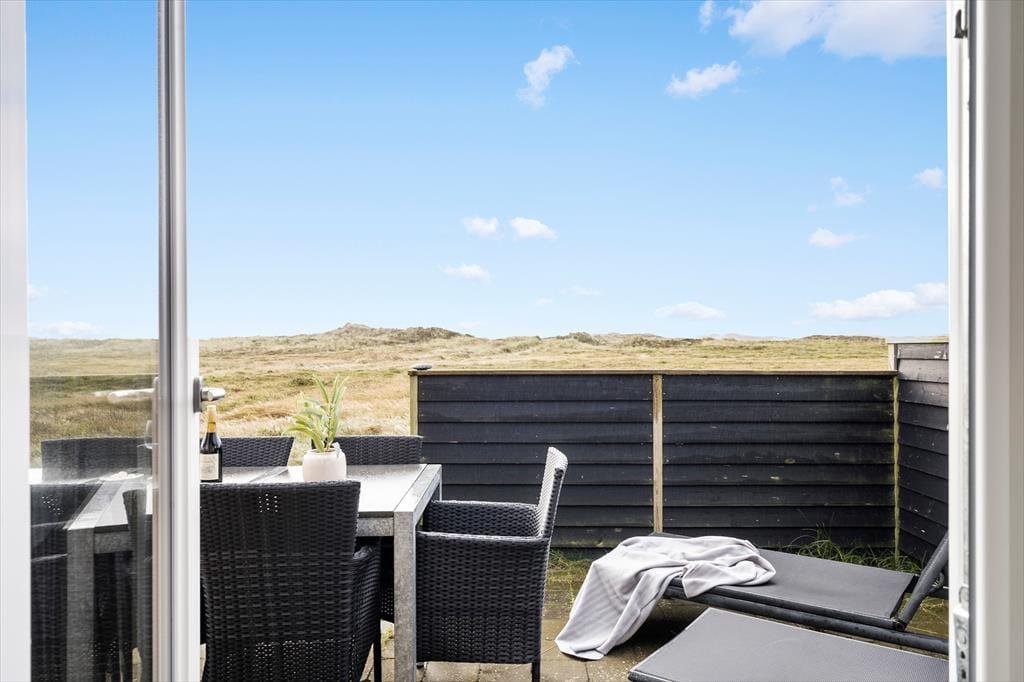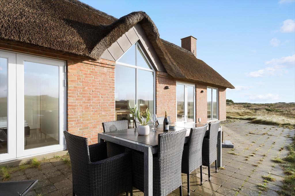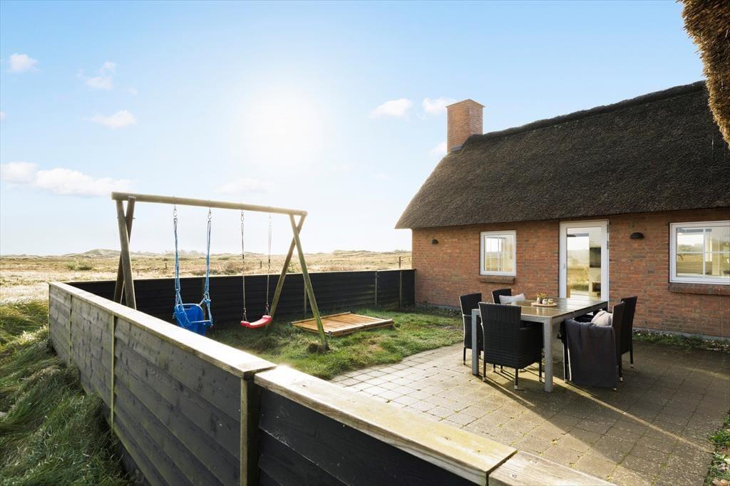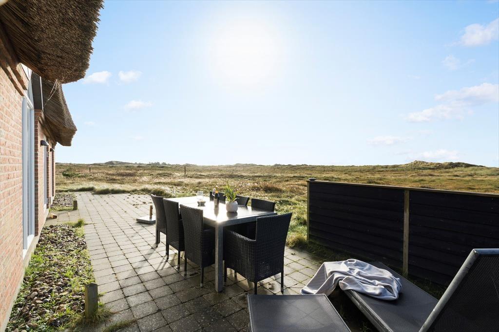Auf der geschlossenen, nach Süden ausgerichteten Terrasse werdet ihr die Ferientage richtig genießen. Hier könnt ihr grillen, Eure Mahlzeiten halten und euch in den Liegestühlen entspannen, während die Sonne von morgens bis abends wärmt. Die abgeschlossene Terrasse ist auch praktisch, wenn ihr Kinder oder Hund dabei habt. Die können ungestört spielen, während du in aller Ruhe ein gutes Buch liest. Auf der gegenüberliegenden Seite des Hauses befindet sich eine weitere Terrasse, wo ihr z.B. den Nachmittag verbringen könnt - mit Aussicht auf die umliegende Dünenlandschaft und den Lyngvig Fyr, der sich in der Ferne erhebt.