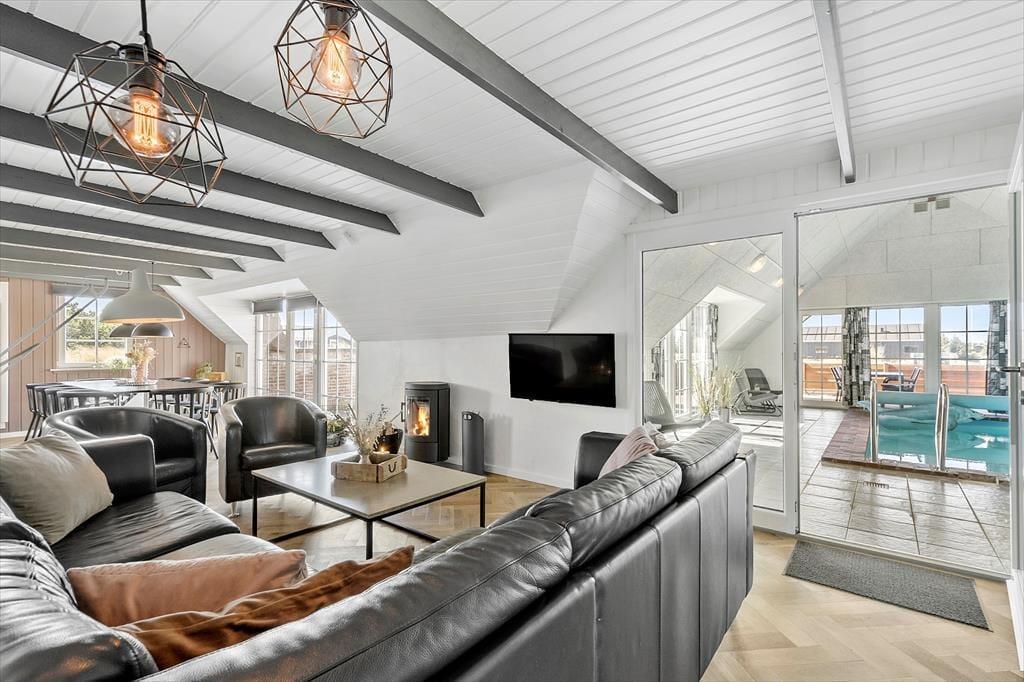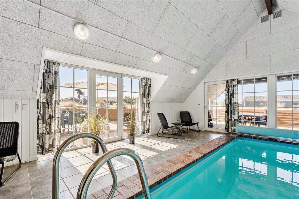 Dieses Haus begrüßt dich mit seiner hellen und freundlichen Einrichtung mit großen Fensterpartien - eine entspannte und einladende Atmosphäre ist geschaffen. Der Wohnbereich vereint Küche, Essbereich und Wohnzimmer, wo ihr Gemeinsamkeit und Beisammensein in vollen Zügen genießen könnt – ob beim Zubereiten des Essens, bei einem guten Film oder Brettspielen am Esstisch. Das absolute Highlight des Hauses ist der 19 m² große Swimmingpool, in dem sich kleine und große Wasserratten stundenlang vergnügen können. Nach einem erfrischenden Untertaucher im Pool lädt die Sauna zu purer Entspannung ein – perfekt nach einem aktiven Tag in der westjütländischen Natur.