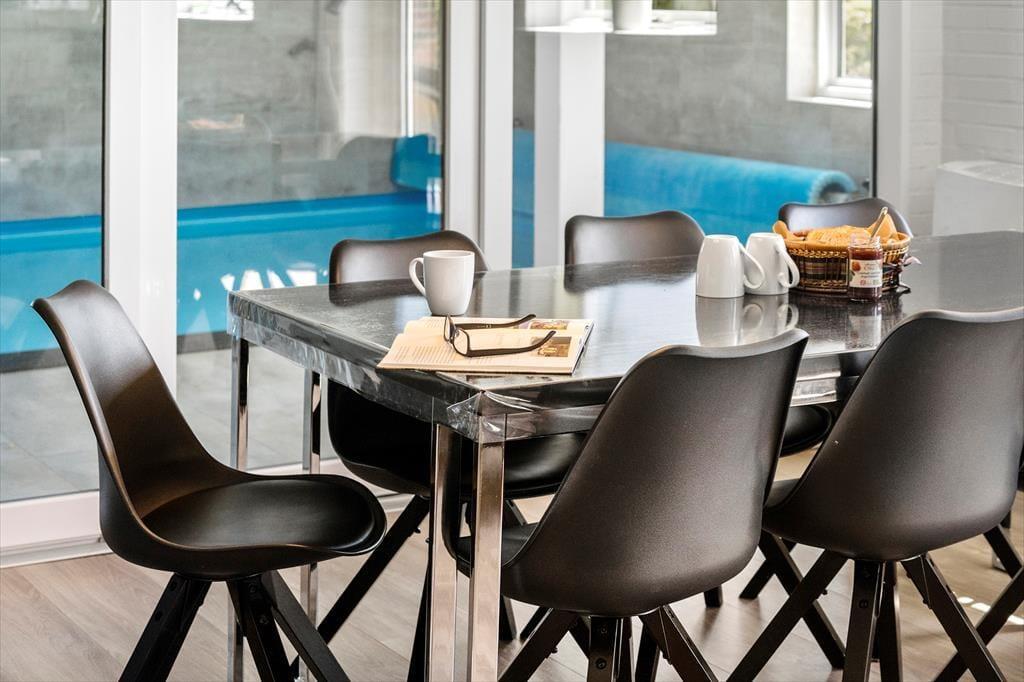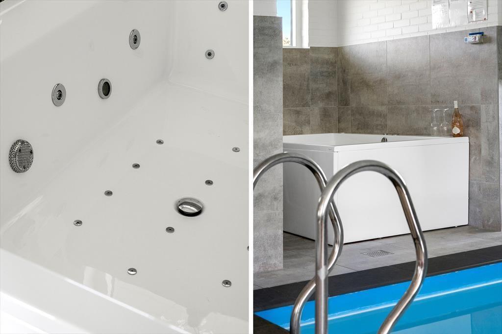 Hier erwartet euch ein Urlaub mit viel Platz für gemeinsame Zeit und persönlichen Verwöhnmomenten. Der helle Wohnbereich ist der natürliche Treffpunkt des Hauses – perfekt, um gesellige Runden am Esstisch zu verbringen auf dem Sofa vor dem Knistern des Kaminofens zu relaxen. Die Küche und die Wohnstube sind offen miteinander verbunden. Eine praktische Einrichtung, die die alltäglichen Dinge mühelos von der Hand gehen lassen - genau, wie es im Urlaub sein soll. Und steht euch der Sinn nach einer Extraportion Entspannung, könnt ihr euch in die hauseigenen Pool- und Wellnessbereiche zurückziehen. Hier findet ihr eine Abteilung mit beheiztem Pool und einen einladenden Whirlpool, während der Saunaraum separat liegt und dort zu wohltuender Wärme und innerer Ruhe einlädt. In seiner Gesamtheit ist der perfekte Ramen für einen Urlaub geschaffen, der sowohl anspruchsvolle als auch bescheidenere Wünsche auf beste Weise erfüllt.