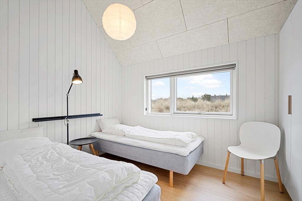 Hinter der schönen Holzfassade sind die Räume hell und einladend. Hier ist reichlich Platz, um Freunde oder Familie mit in den Urlaub einzuladen. Wen auch immer Sie als Gesellschaft bevorzugen, Sie können sich auf herrliche Tage freuen - einfach entspannen und das Leben genießen. Der Holzofen neben dem Sofa im Wohnraum ist perfekt für kühle Tage. Die offene, gut ausgestattete Küche bietet sich an, hier die leckersten Lieblingsgerichte zuzubereiten, vom einfachen Nudelgericht zu Menüs für Fortgeschrittene. Ebenfalls vom Essbereich hat man einen schönen Blick auf die Dünen und den Himmel mit seinen vorbeigleitenden Wolken - wenn man nicht gerade in einem der drei Schlafzimmern Siebenschläferschlaf schläft oder sich in der Sauna entspannt.