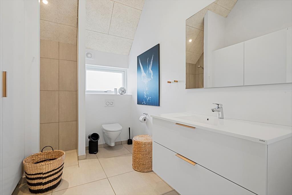 Vom großen Naturgrundstück ist der Zugang zum Klegod Strand leicht gemacht. Sie brauchen nur bis zum Ende der Straße hinunterschlendern und das letzte Stück dem Wegesystem folgen. Die Nordsee ist zu jeder Jahreszeit beeindruckend und lädt das Wetter nicht gerade zum Baden ein, freut man sich umso mehr, nach einem windigen Spaziergang am Haus ins eigene Wildnis Bad hüpfen zu können. Das ruhige Ferienhausgebiet Klegod hat eine wunderbare Lage auf der Landzunge „Holmsland Klit“. Die natürliche Umgebung ist unglaublich atemberaubend und es gibt viele Möglichkeiten zum Angeln, Surfen und Radfahren - um nur einige der Aktivitätsmöglichkeiten zu nennen. Der beeindruckende Leuchtturm Nr.Lyngvig liegt in der Nähe und problemlos erreichen Sie die Hafenstadt Hvide Sande oder den Ferienort Søndervig zu einem Besuch.