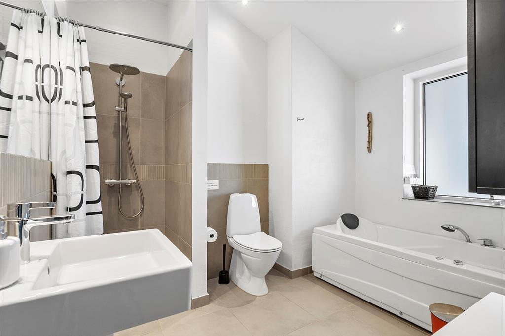Dank der großen, bodentiefen Panoramafenster genießen Sie im Wohnraum einen freien Ausblick auf die attraktive Natur ringsum. Es ist ein wunderschönes Gefühl, so eng mit der Landschaft verbunden zu sein - und mit dem Fjord, der blau hinter den Uferwiesen schimmert. Der Wohnraum verwöhnt mit einem Kaminofen, weichen Polstersitzmöbeln und einem Flachbild-TV. Über ein paar Stufen gelangen Sie vom Wohnraum hinab in den offenen Küchenbereich. Somit nehmen Sie selbst während der Zubereitung der Mahlzeiten am Familienleben im Wohnraum teil. Momente purer Entspannung genießen Sie in der Sauna des einen Badezimmers. Die im zweiten Badezimmer untergebrachte Badewanne verspricht ebenfalls erholsame Momente. Die sehr gute Raumaufteilung wird durch vier gute Schlafräume abgerundet, die insgesamt Platz für acht Personen bieten.