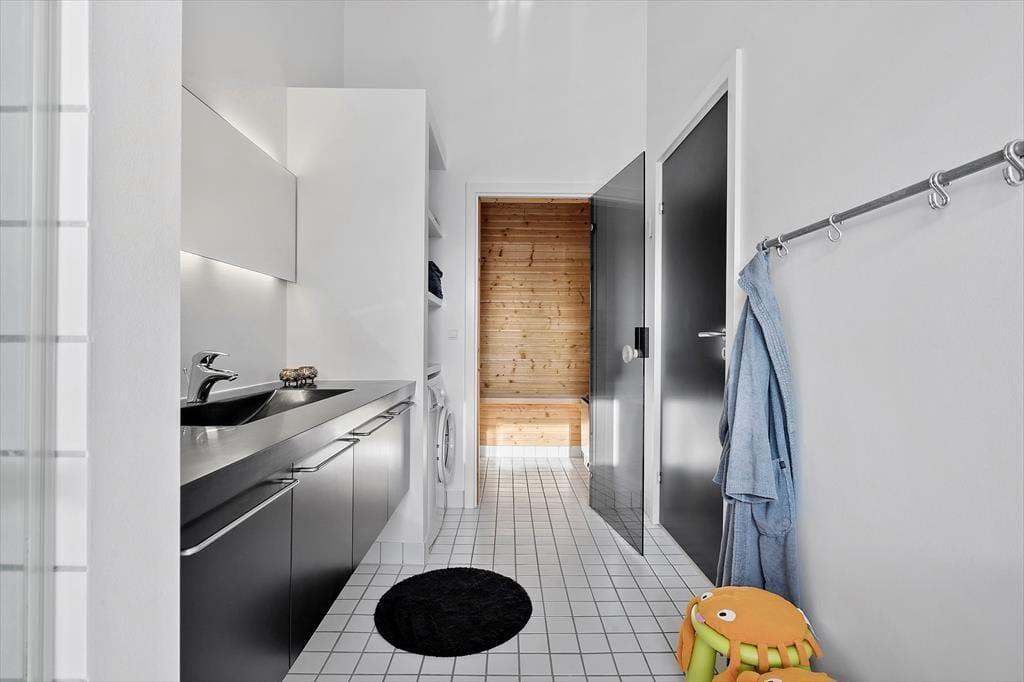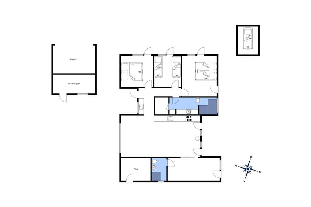 Beim Bau des 119 m² großen Ferienhauses im Jahr 2007 standen die Verwendung qualitativ hochwertiger Materialien und die Ausgestaltung mit diversen attraktiven Details im Mittelpunkt. So wurden die Räume beispielsweise mit zahlreichen Terrassentüren versehen, wodurch die Außenareale wie eine natürliche Erweiterung der Wohnfläche wirken. Das größere der beiden Badezimmer lädt mit einer Badewanne und einer Sauna zu erholsamen Stunden voller Wellnessflair ein. Die drei Schlafzimmer sind nebeneinander platziert. Eines der Schlafzimmer verfügt über einen Zugang zum Hängeboden, auf dem Ihre Kinder gern spielen, lesen und kuscheln werden. Der große Aufenthaltsbereich mit hohen Decken bildet das Herzstück des Mietobjektes. In diesem Raum werden Sie gemeinsam viel Zeit beim Essen, beim Spielen und während gemütlicher Filmabende auf dem Sofa verbringen. Die tolle Küche mit Edelstahlfronten und einer composit tischplatte fügt sich offen in den Aufenthaltsbereich ein. Für Wärme und Ferienhausatmosphäre sorgt ein eingebauter Kaminofen.