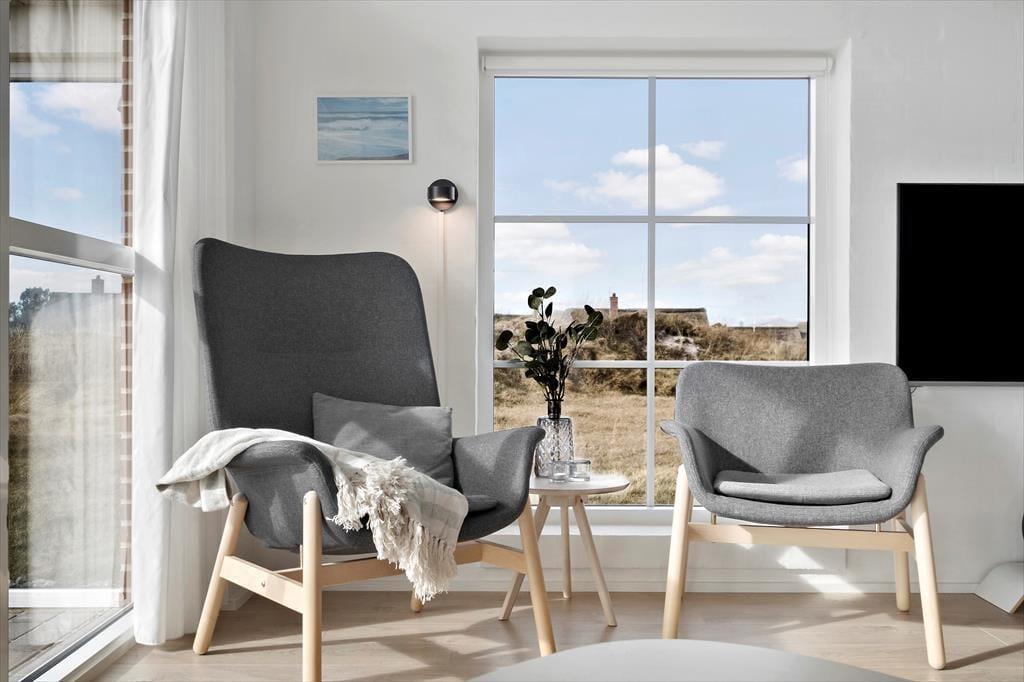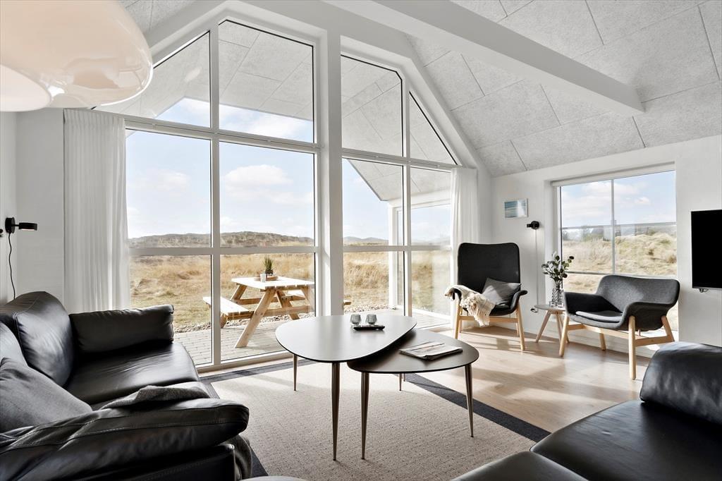 Stell dir vor, du wachst auf und wirst von den ersten Strahlen des Tageslichts durch die großen, nach Süden ausgerichteten Fenster begrüßt. Du trittst direkt auf eine uneinsehbare Terrasse mit Blick auf eine atemberaubende, unter Naturschutz stehende Dünenlandschaft – kann es schönere geben? Am Nordsø Ferievej 39 in Klegod findest du genau diese exquisite Lage, in der du Ruhe, Natur und das Licht des Leuchtturmes Lyngvig Fyr genießen kannst, der in der Ferne blinkt, sobald die Dunkelheit hereinbricht.