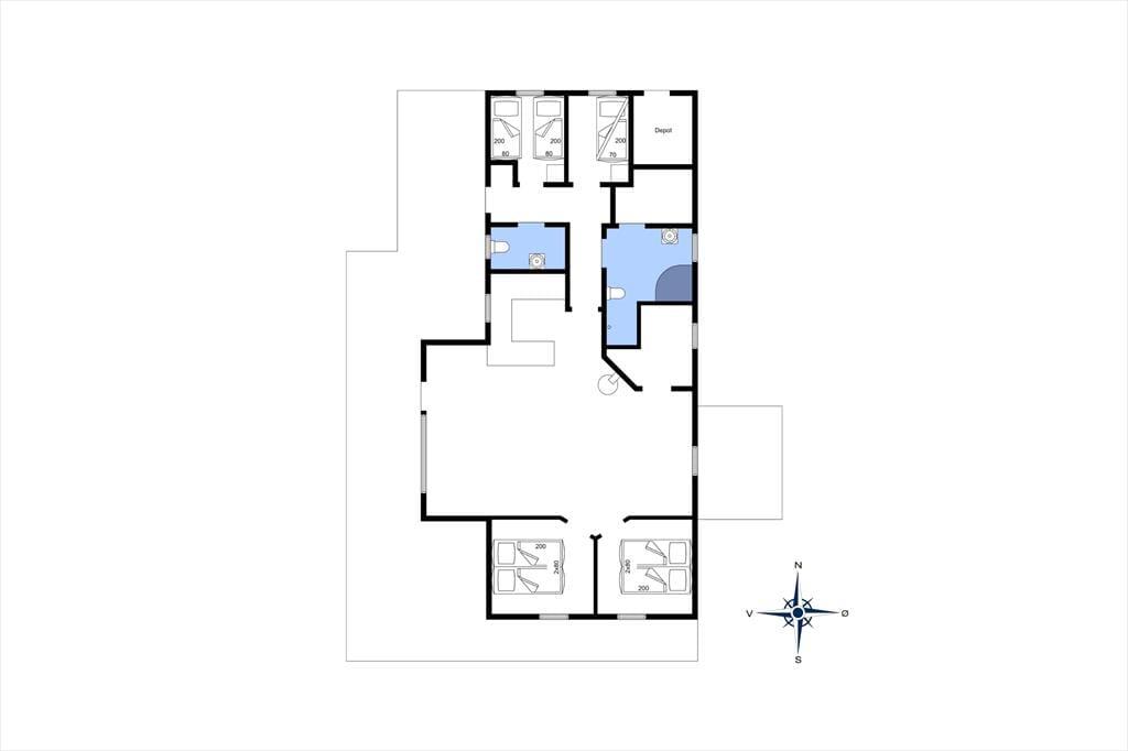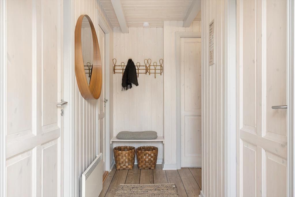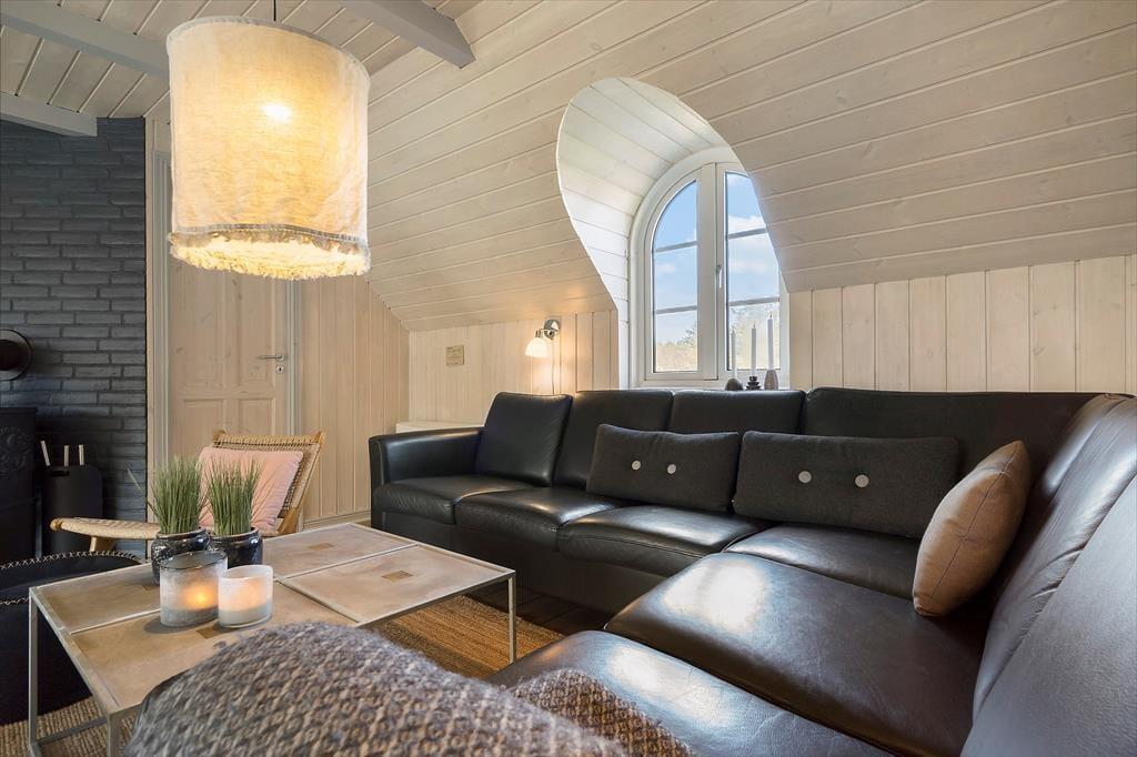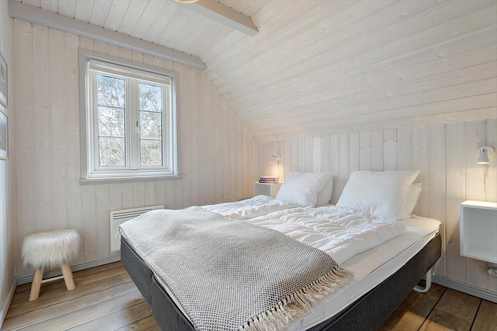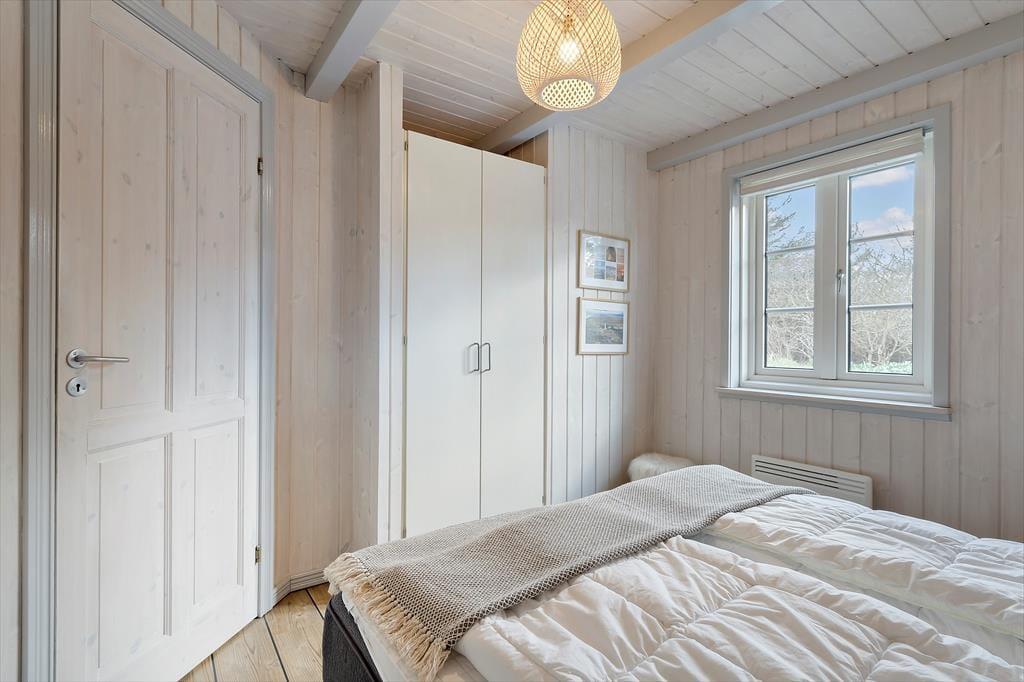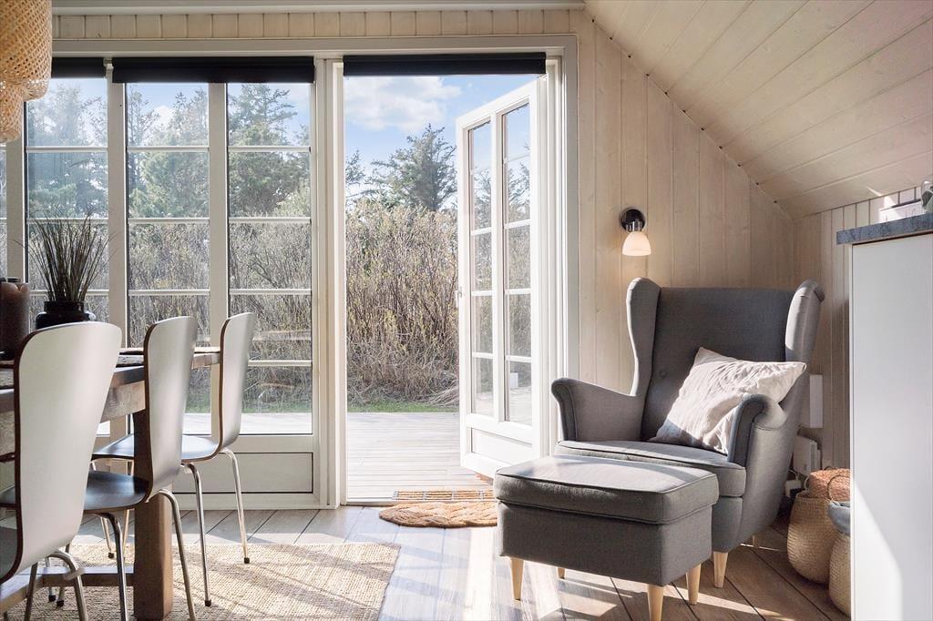 Die vier Schlafzimmer sind gleichmäßig in zwei Abschnitte an den gegenüberliegenden Enden des Hauses aufgeteilt, so dass zwei Familien, die zusammen Urlaub machen, jeweils ihren eigenen Schlafbereich haben. Alle können sich im großen, offenen Wohnbereich treffen, wo Küche und Wohnzimmer zu einer Einheit verschmelzen und die Wärmepumpe und der Holzofen für angenehme Temperaturen sorgen. Kochen Sie gemeinsam in der modernen Küche und lassen Sie den Geschirrspüler die Arbeit erledigen, während Sie es sich am Esstisch oder auf den weichen Möbeln gemütlich machen. Wi-Fi und Flachbildfernseher sorgen für Unterhaltung, und im Abstellraum gibt es einen Bob, einen Mini-Kicker und andere lustige Spiele. Neben der Eingangshalle verfügt das Ferienhaus über eine separate Toilette und ein Wellnessbad mit begehbarer Dusche, wo Sie sich im Whirlpool oder im heißen Dampf der Sauna entspannen können.