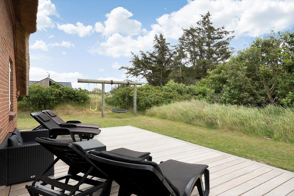 Das 2010 m2 große Grundstück bietet viel Platz, um den Urlaub im Freien zu verbringen. Im Osten befindet sich eine Morgenterrasse, auf der Sie die ersten Sonnenstrahlen des Tages bei einer dampfenden Tasse Kaffee genießen können. Den Rest des Tages können Sie auf der nach Süden und Westen ausgerichteten Holzterrasse verbringen, die mit ihren vielen Quadratmetern viel Platz zum Entspannen in den Liegestühlen und am Terrassentisch bietet, während die Köstlichkeiten auf dem Grill brutzeln. Für die Kleinen gibt es einen Sandkasten, Schaukeln und Spielgeräte, und die Wiese lädt zum Ballspielen ein.
