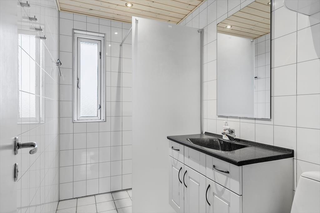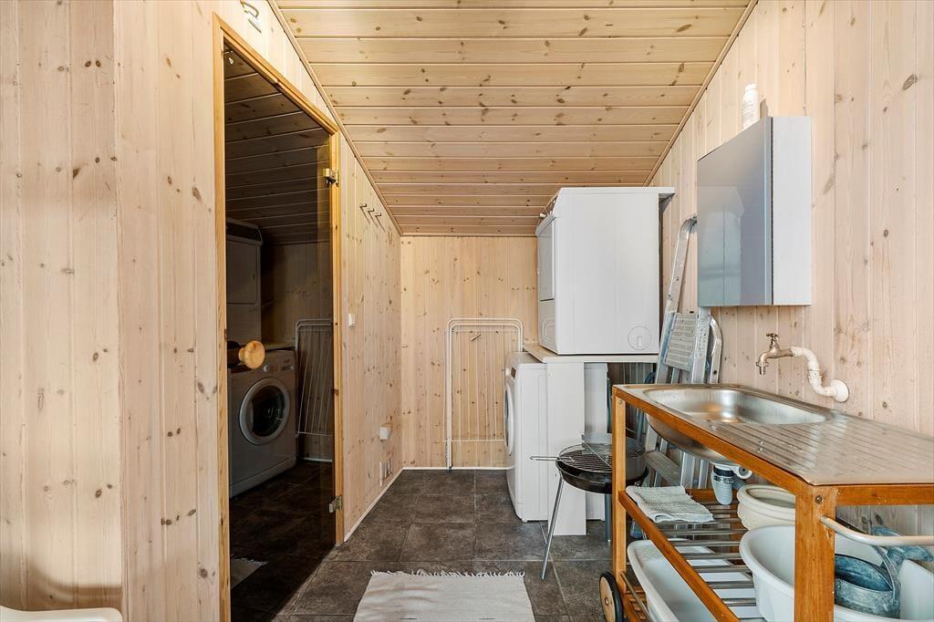 Das Ferienhaus empfängt Sie mit drei Schlafräumen, die insgesamt sechs Schlafplätze bieten. Das hell und ansprechend eingerichtete Badezimmer beinhaltet eine Duschnische. Im Nebengebäude stehen Ihnen eine Sauna und ein Hauswirtschaftsraum mit einer Waschmaschine, einem Wäschetrockner und einem Fischreinigungsplatz zur Verfügung. Der Aufenthaltsraum setzt sich offen aus dem Wohnraum und der offenen Küche zusammen. Eine Wärmepumpe und ein Kaminofen sorgen für angenehme Temperaturen. In der gut ausgestatteten Küche steht unter anderem ein Geschirrspüler zur Verfügung. Der Wohnraum lädt mit seinem Essplatz und der Polstersitzgarnitur samt TV zu gemütlichen Stunden ein. Große Fensterpartien lassen viel Tageslicht durch das Haus strömen. Dank der Fenster genießen Sie zudem einen herrlichen Ausblick auf die Natur und den Fjord.